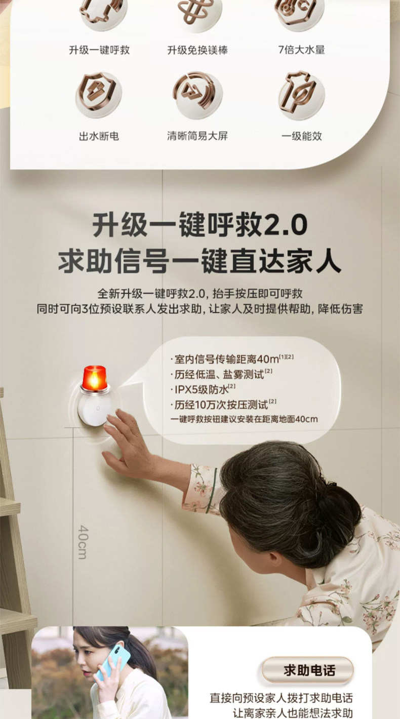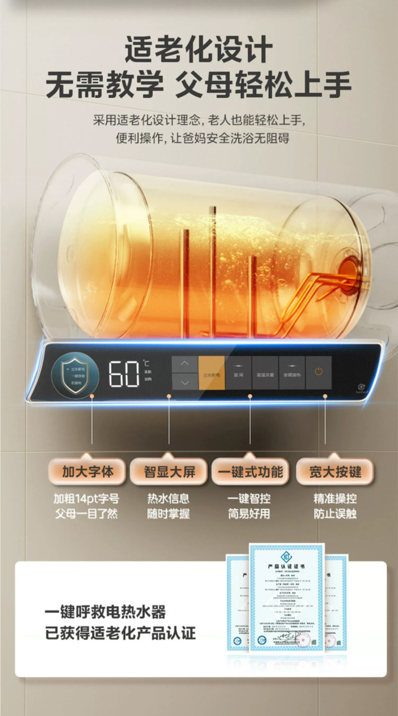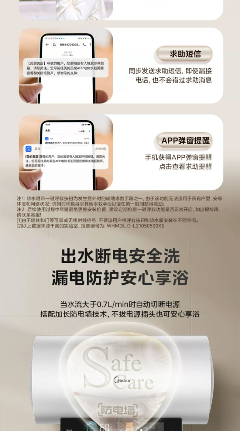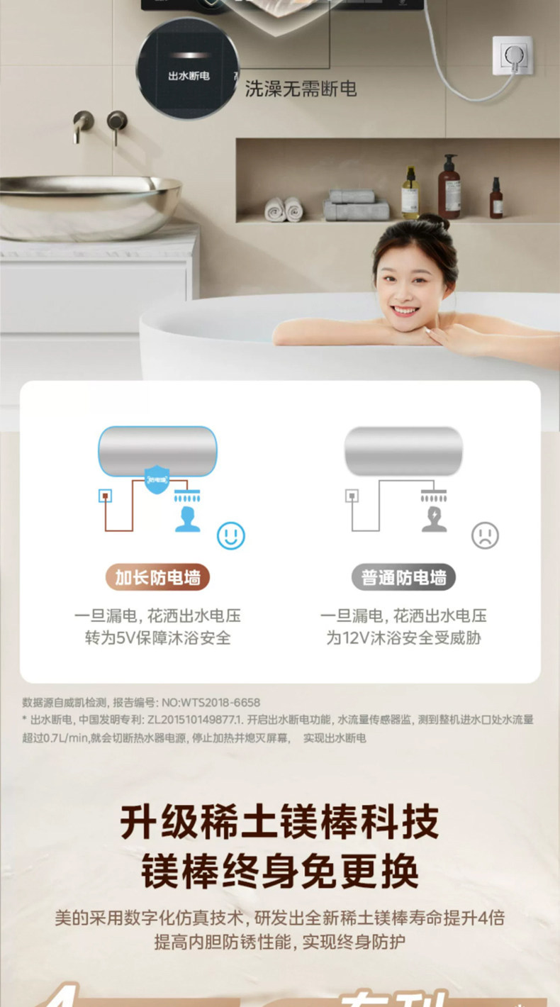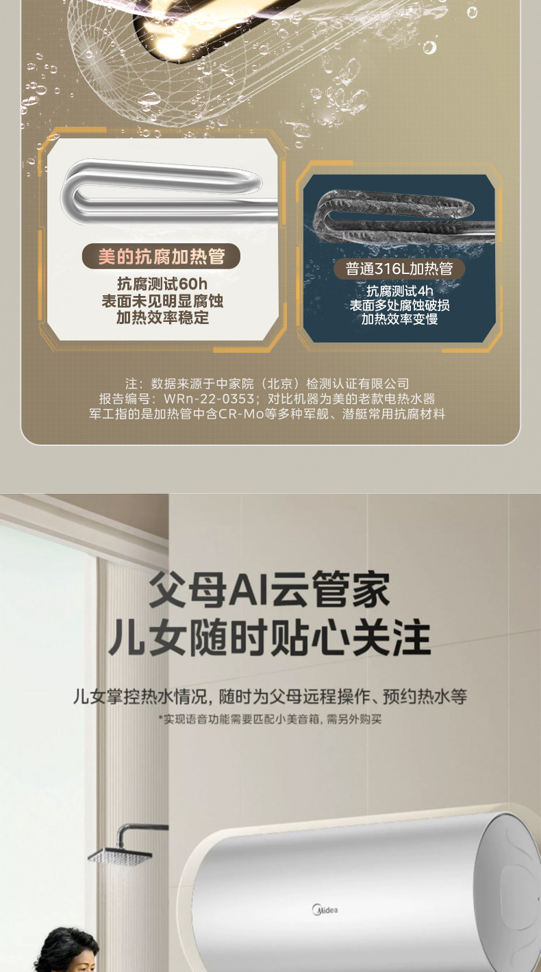 [Один -клик для помощи] Midea CA3S Электрический водонагреватель 60 -литровый частотный выходной разрыв водопровода -Первая энергоэффективность. Домохозяйство 80 литров