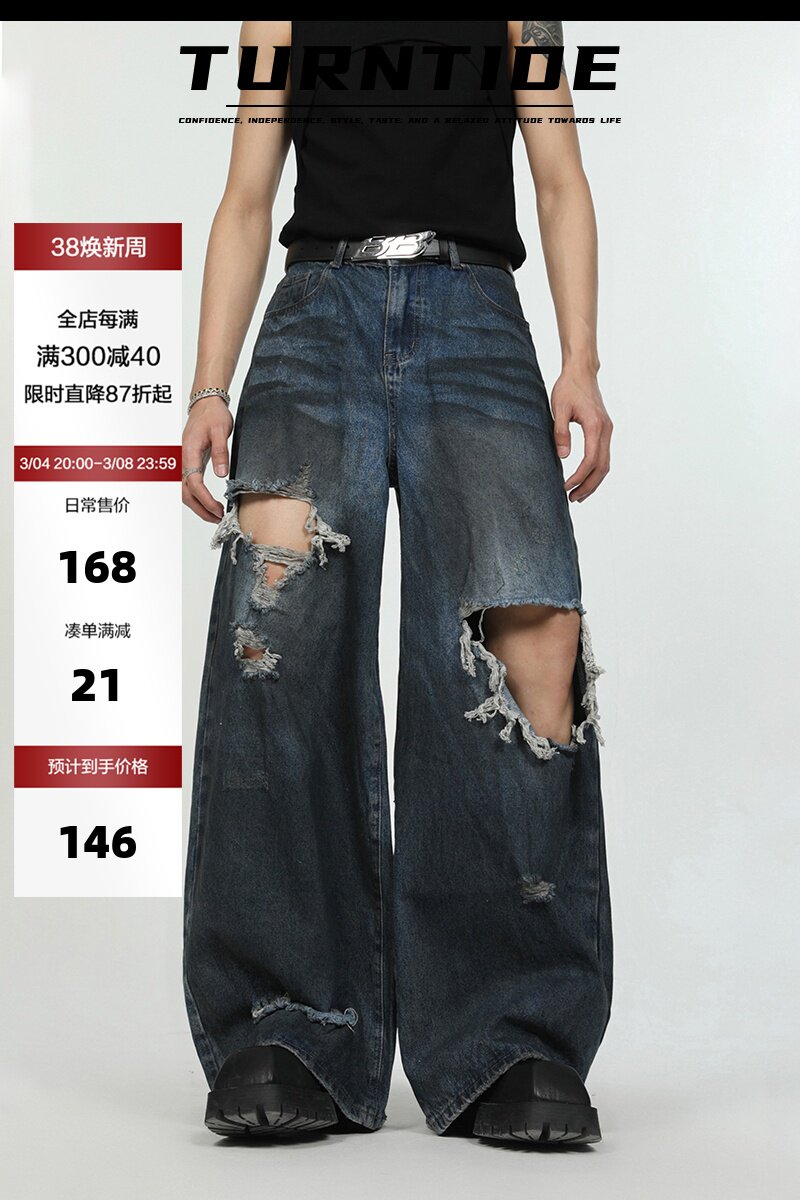 Джинсы, штаны, в американском стиле, свободный прямой крой