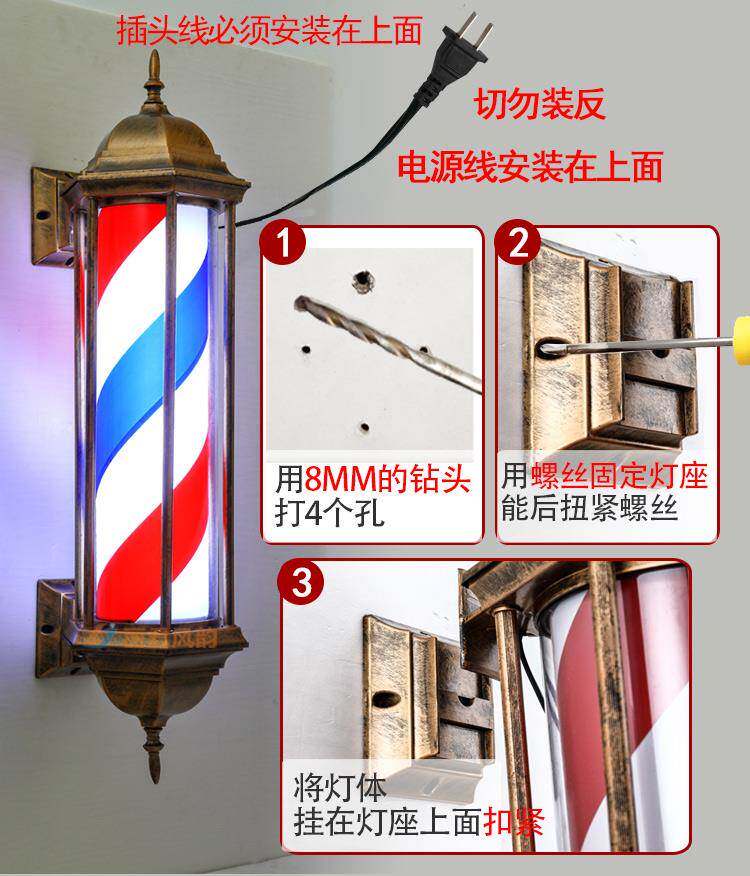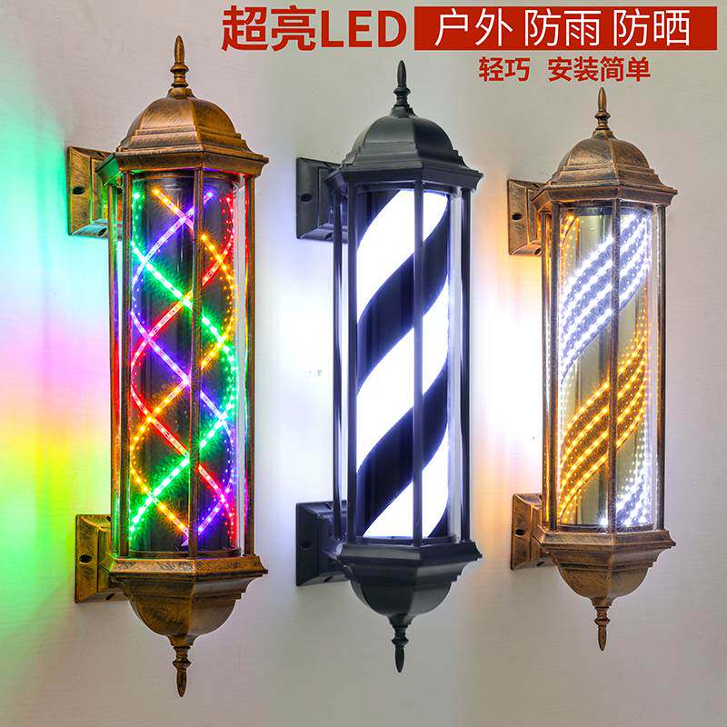 Ретро-парикмахерская, светодиодный вращающийся светильник для парикмахерской, висит на стене, супер яркий, вход в парикмахерскую, вращающийся небольшой световой короб, уличный водонепроницаемый