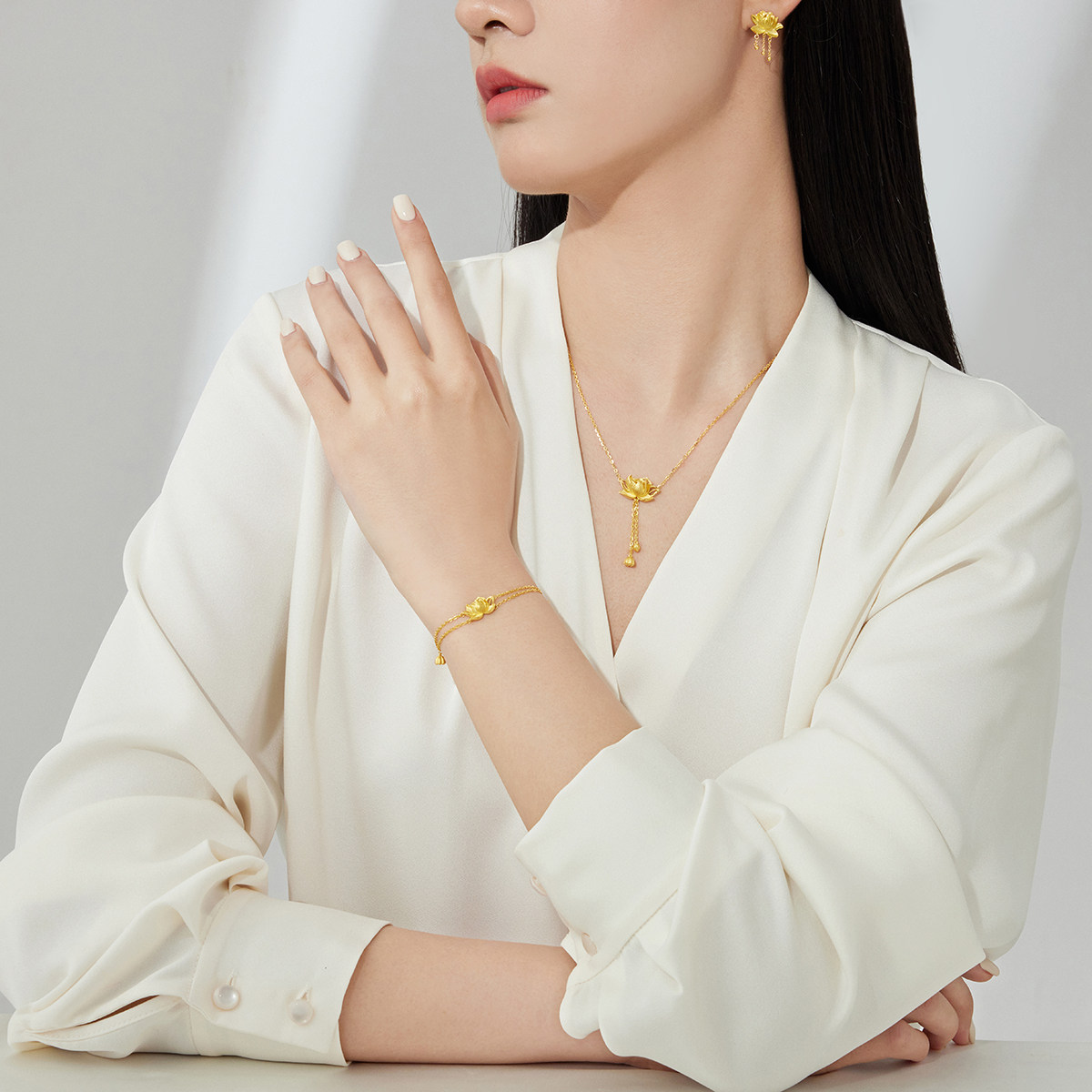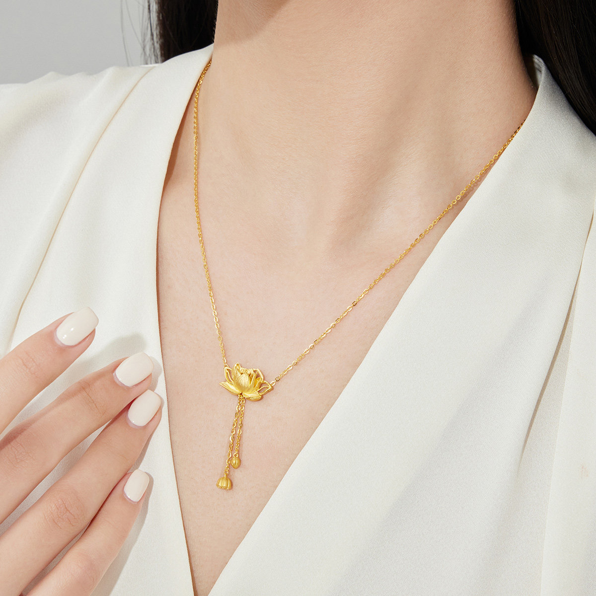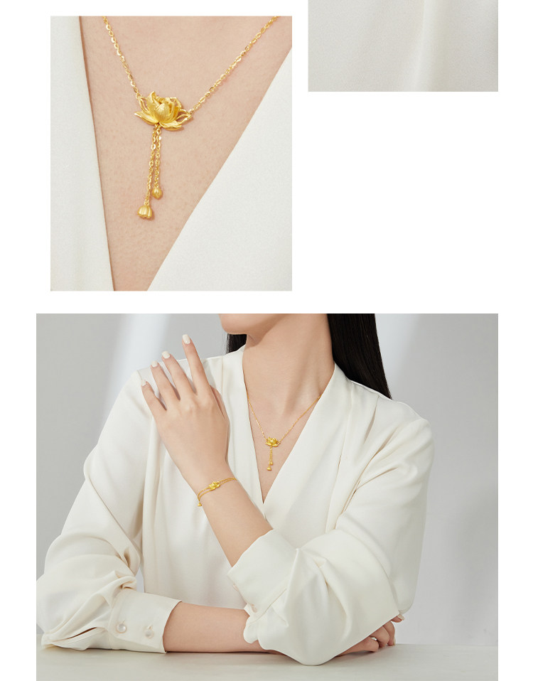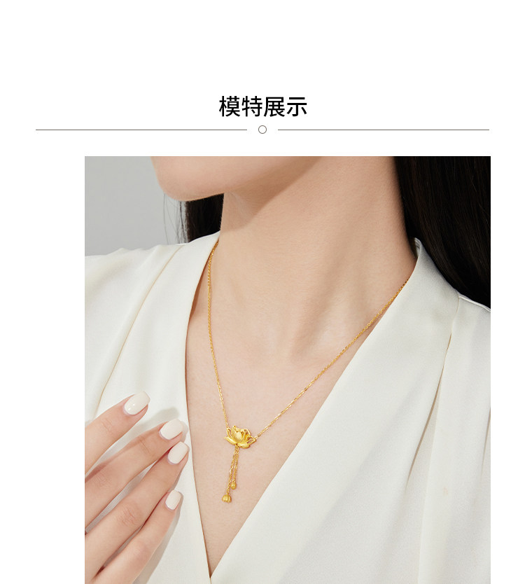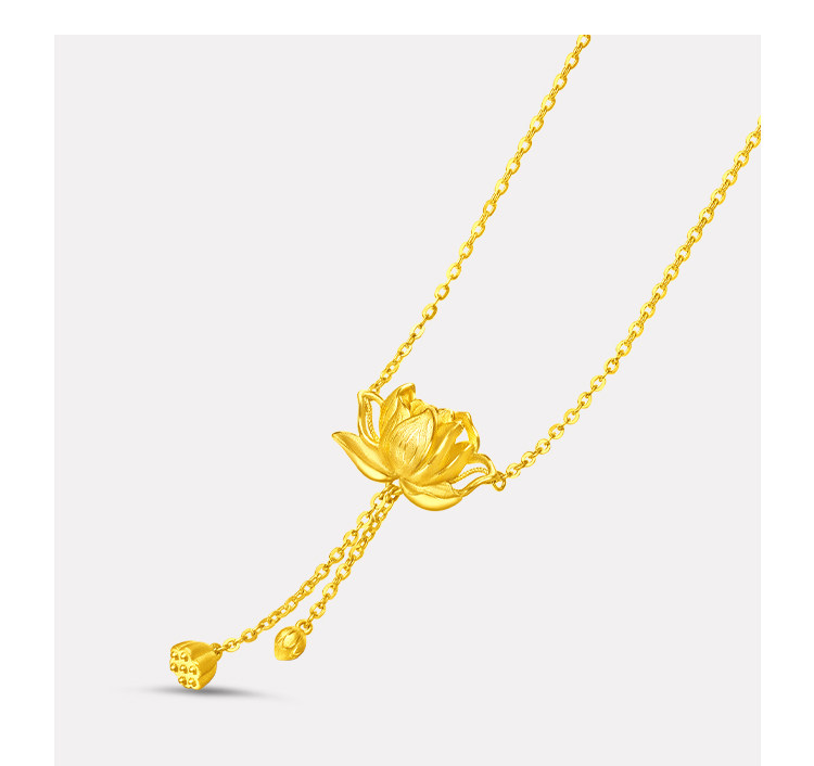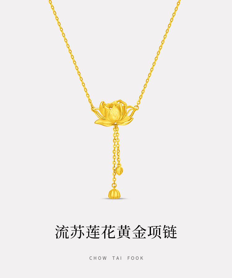 周大福 Сказочный элегантный потоковой лотос Золотое Золотое Ожерелье Женское дилерский центр EOF1149