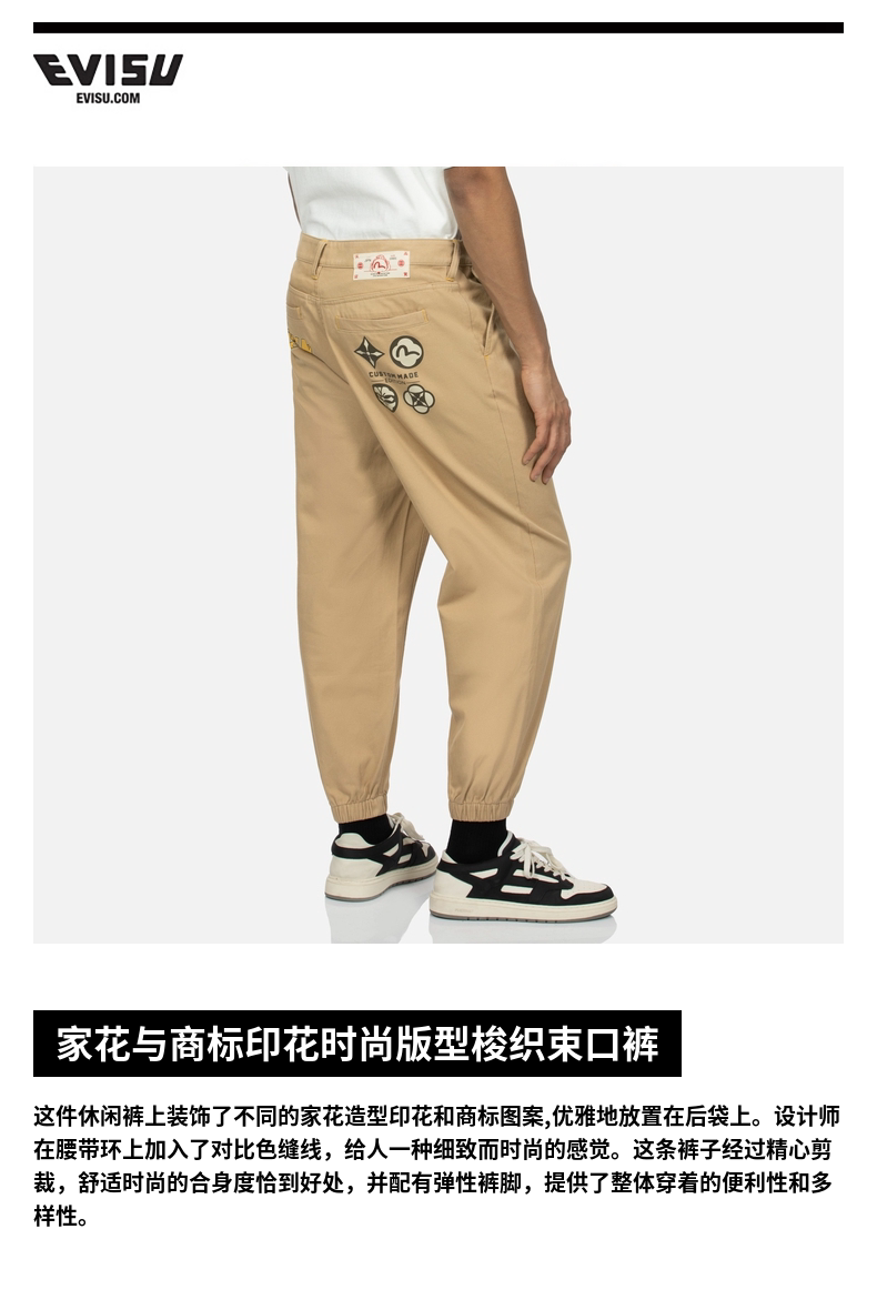 EVISU2024 мужские домашние цветы и товарный знак модные длинные брюки из чистого хлопка с завязками для мужчин