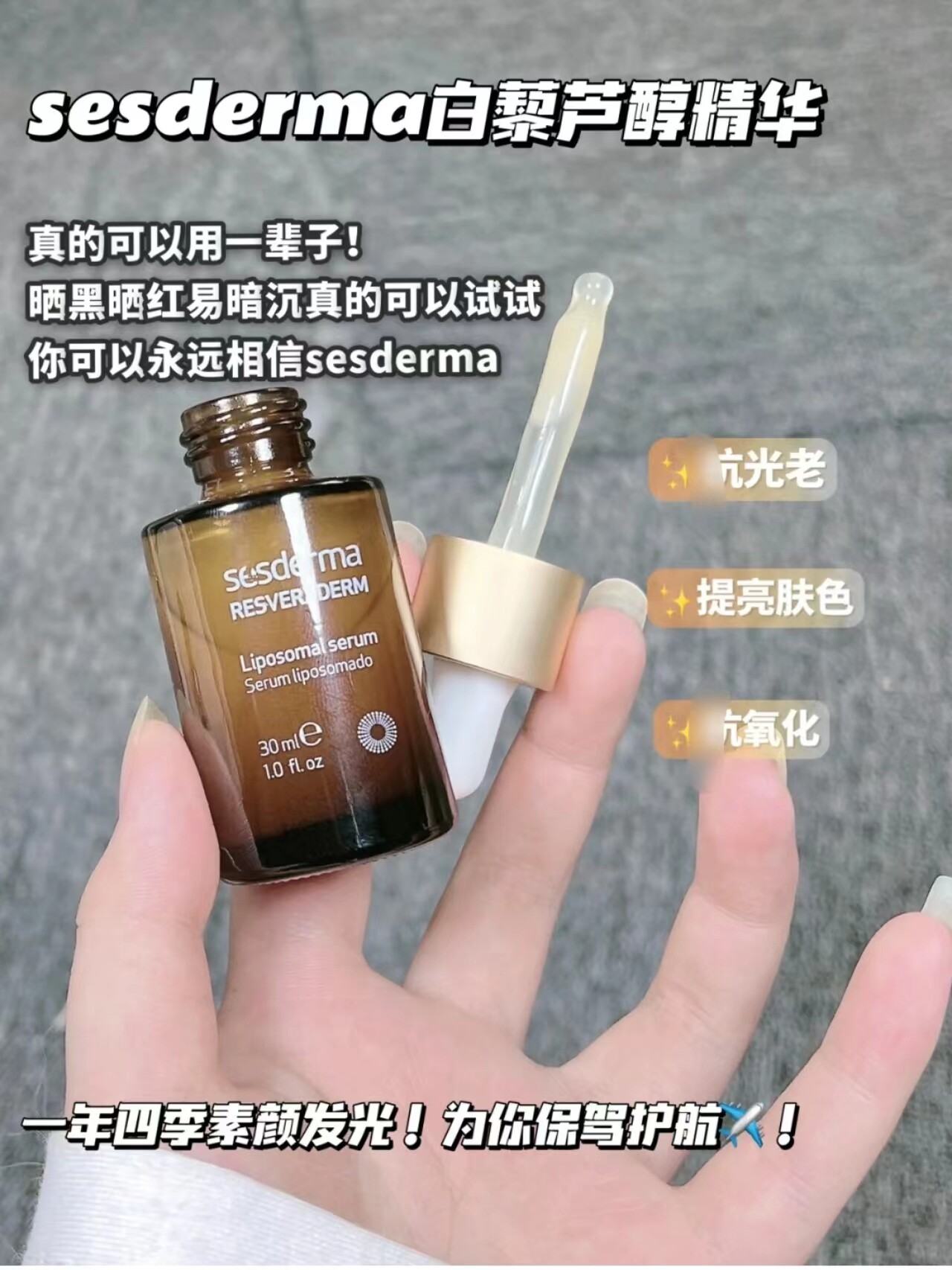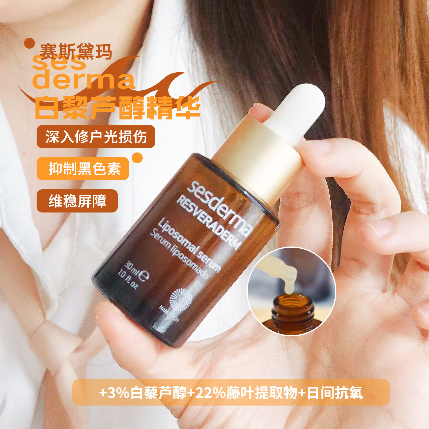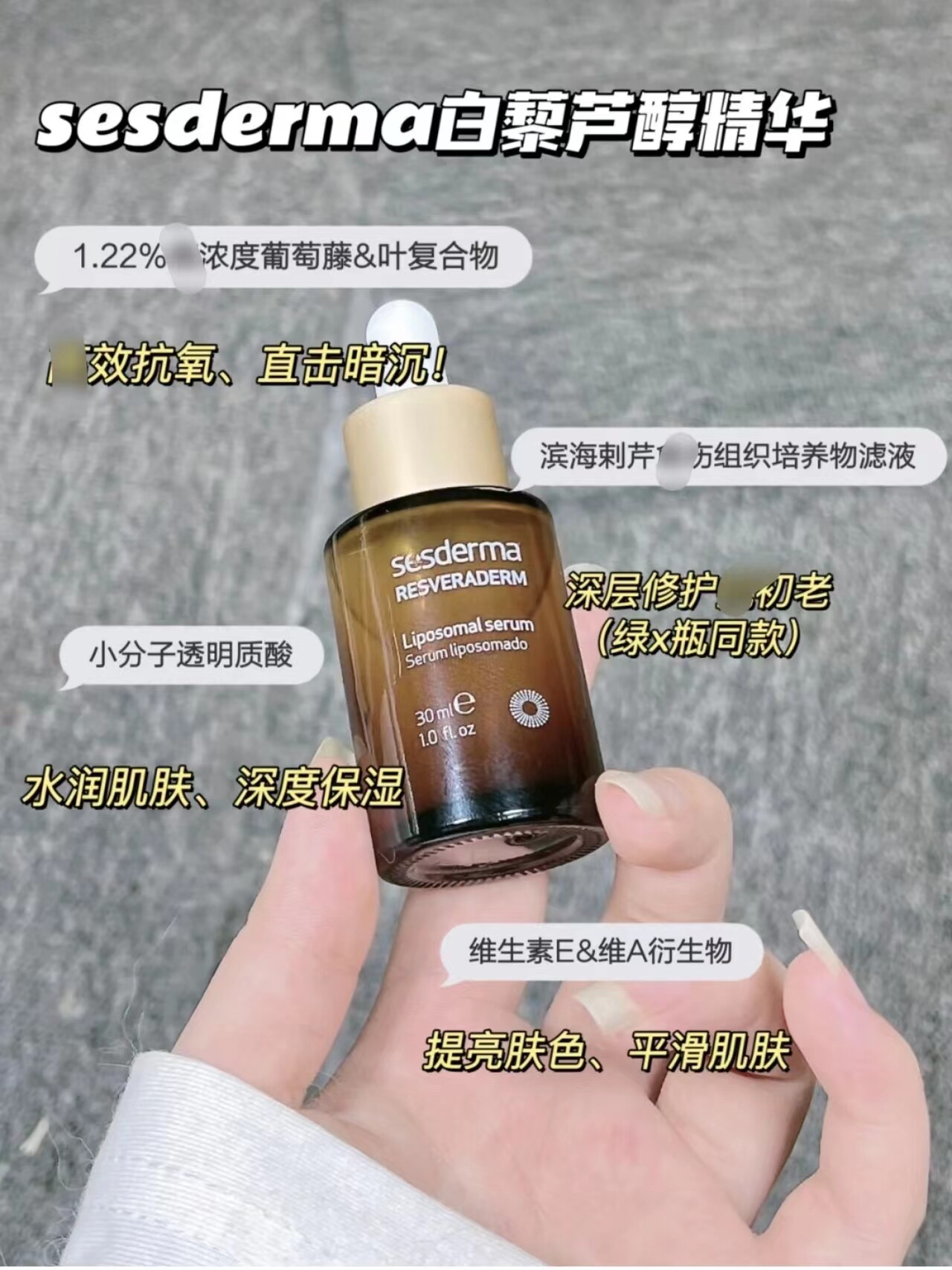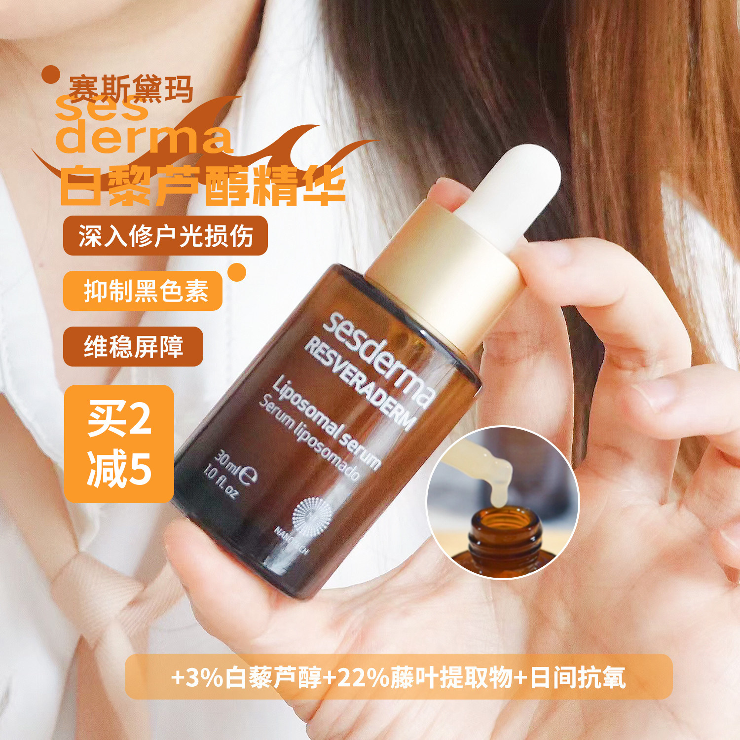 Большое специальное предложение!Купить 2-5 юань!Сесдерма ресвератрол эссенция 30 мл антиоксидация и отбеливание облегчает увлажнение