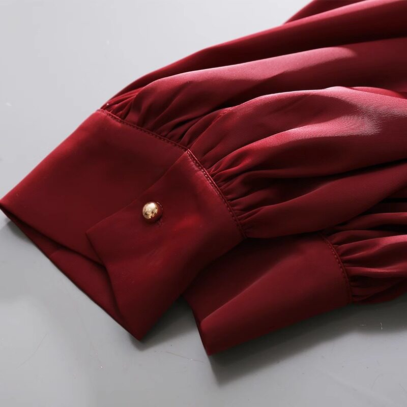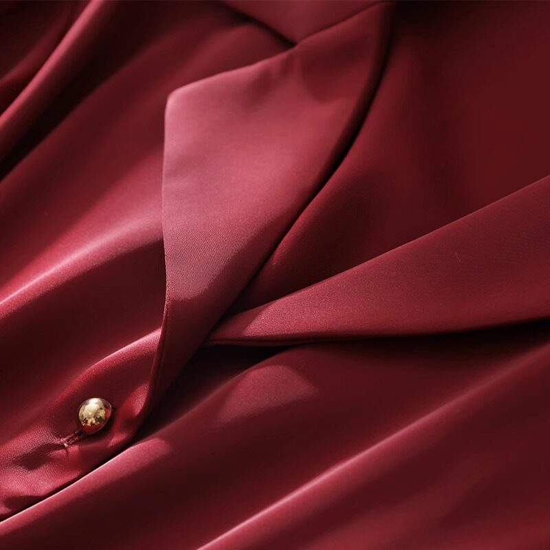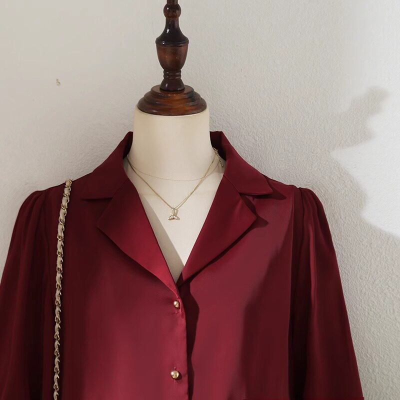Ретро красный пиджак классического кроя, весенняя рубашка, шелковый дизайнерский лонгслив, французский стиль, тренд сезона