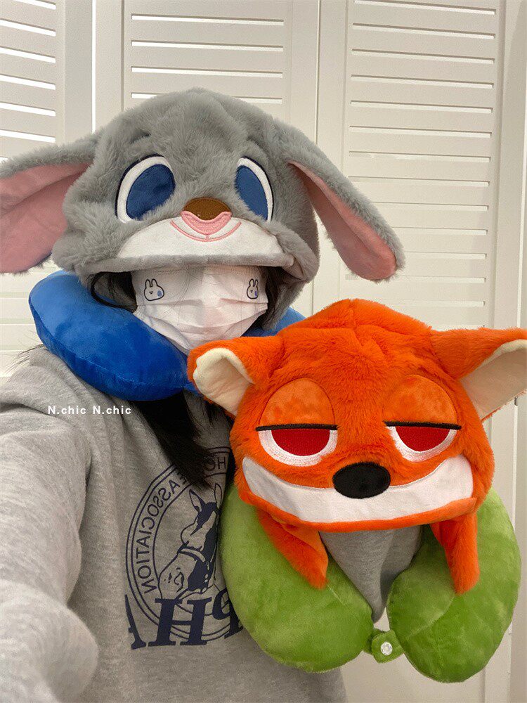 Плюшевая мультяшная шапка, самолет для путешествий с капюшоном, подушка для шеи для сна, для влюбленных, с защитой шеи