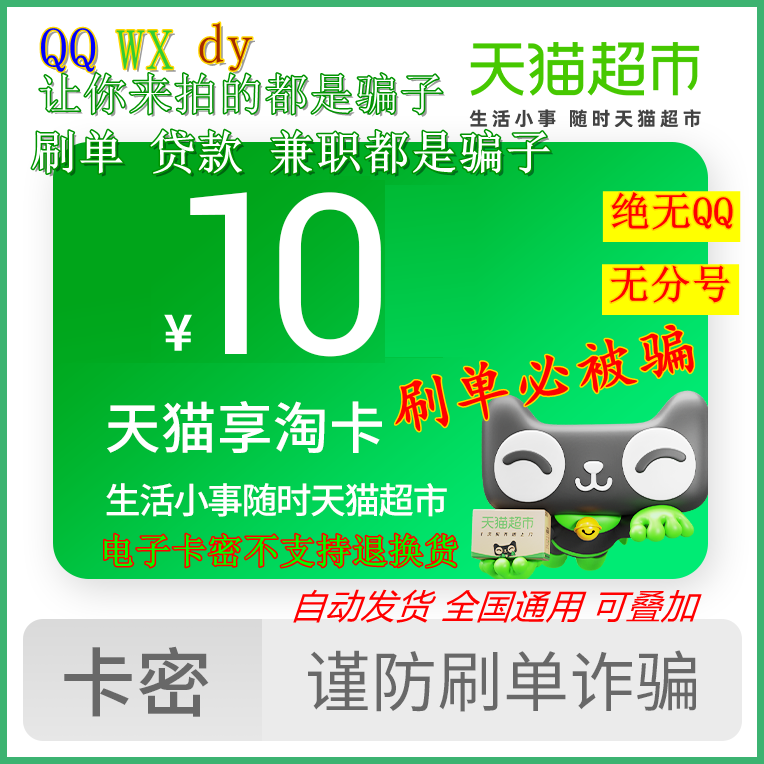 [Автоматическая доставка] Карта супермаркета Tmall использует электронные карты Tao Card и Maochao Card номиналом 10 юаней. Это ложь, если вы пришли его купить.
