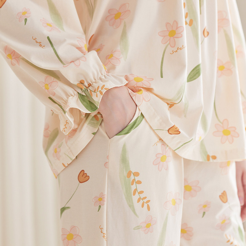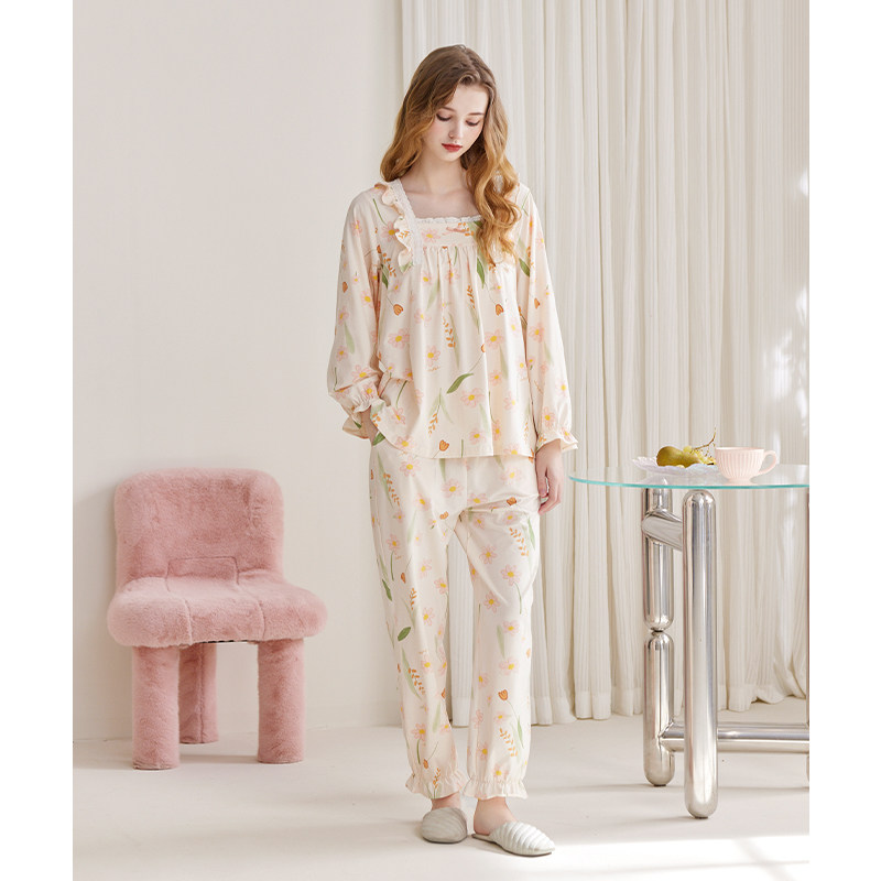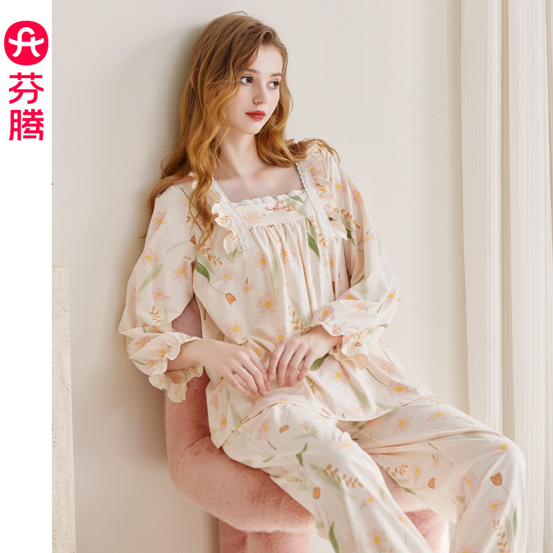 芬腾 Осенняя демисезонная пижама, хлопковый антибактериальный лонгслив для отдыха, комплект, большой размер
