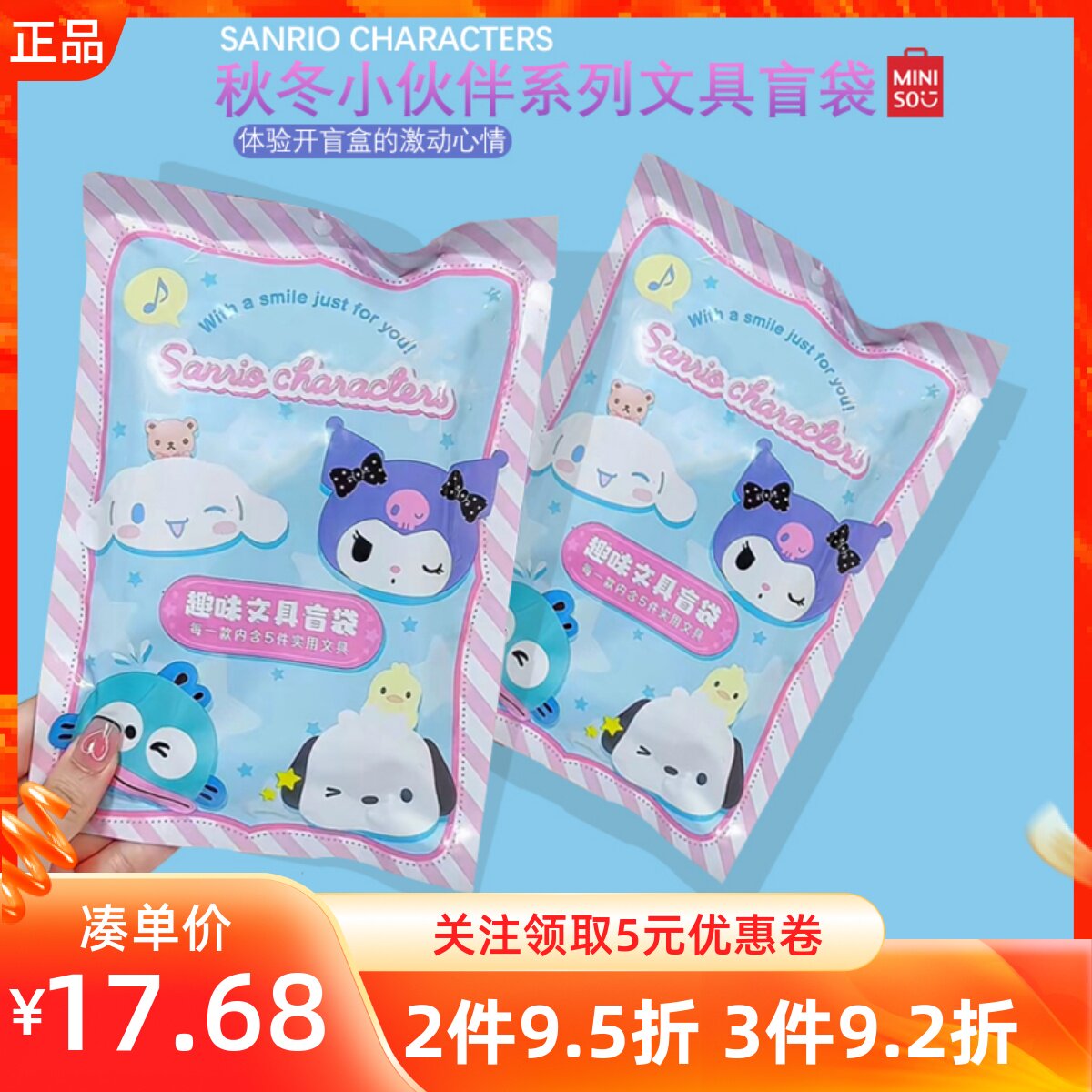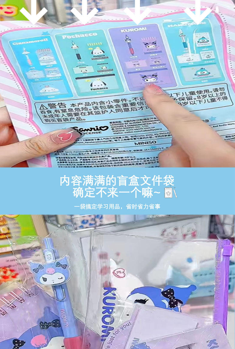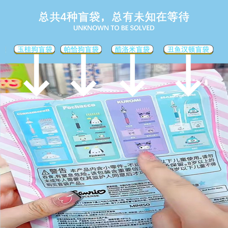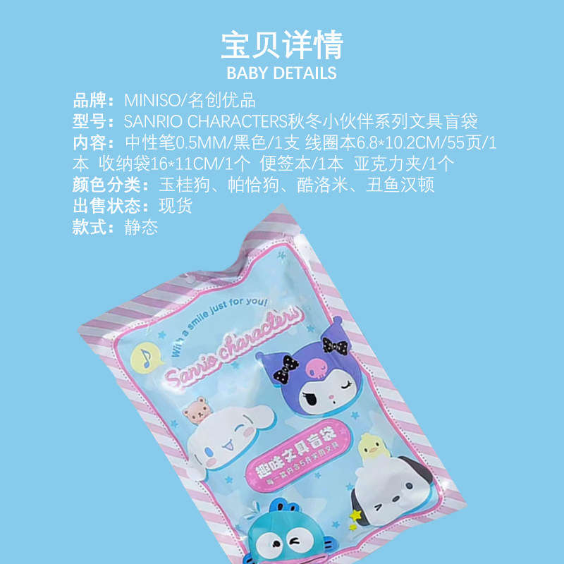 Miniso Mingyin Youpin Sanrio Осень Зимний Партнерский сериал Слепые Слепые Слух Симпатичные Учебные Попаки 5 штук