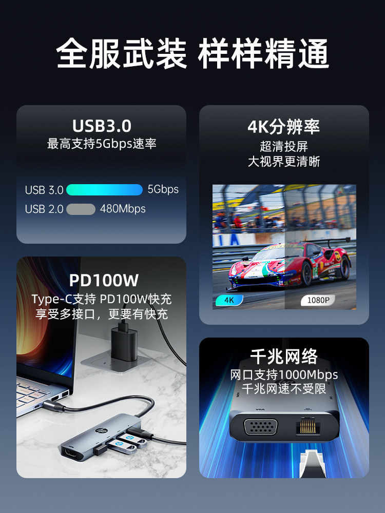 Док-станция расширения HP HP Type-c, преобразование проекционного экрана HDMI, USB-разветвитель-концентратор, сетевой кабель, многофункциональный многоинтерфейсный адаптер, ноутбук, планшет iPad, аксессуары для мобильных телефонов