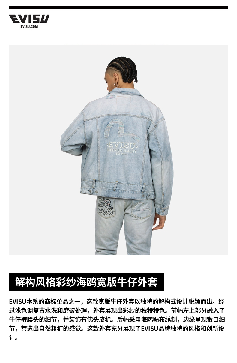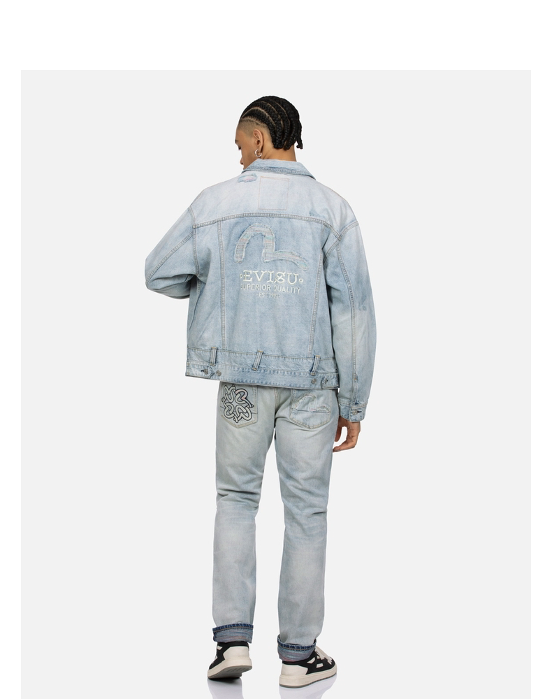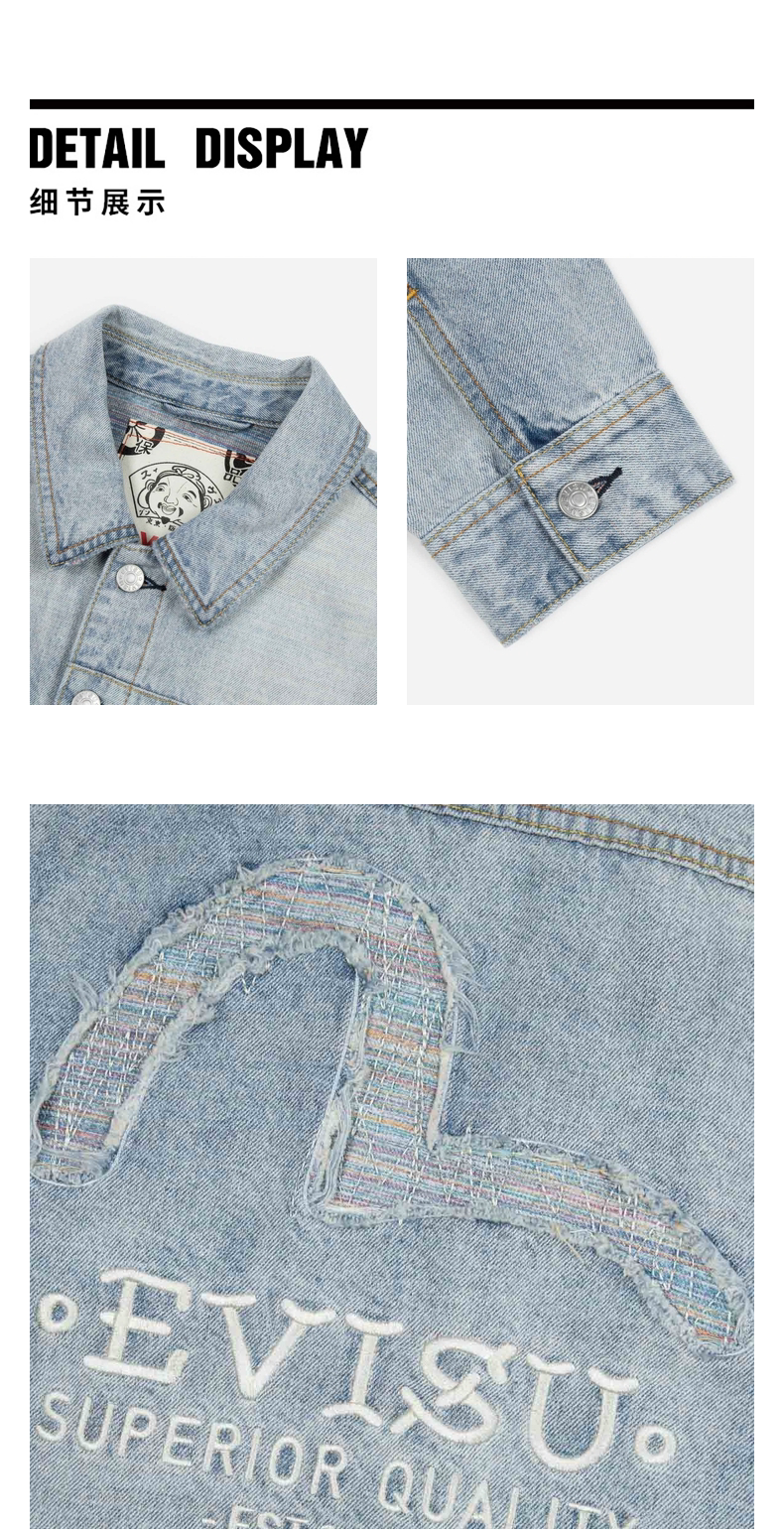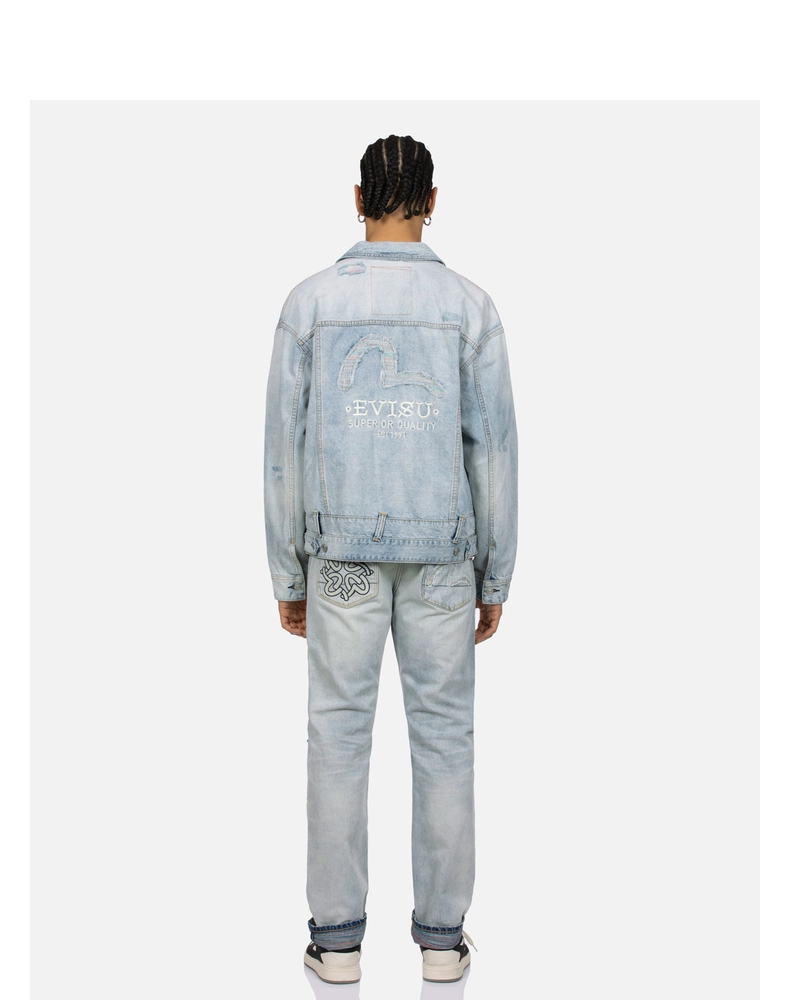 [Тот же стиль, что и у Итана Руана] Мужская повседневная джинсовая куртка EVISU в деконструированном стиле с изображением чайки