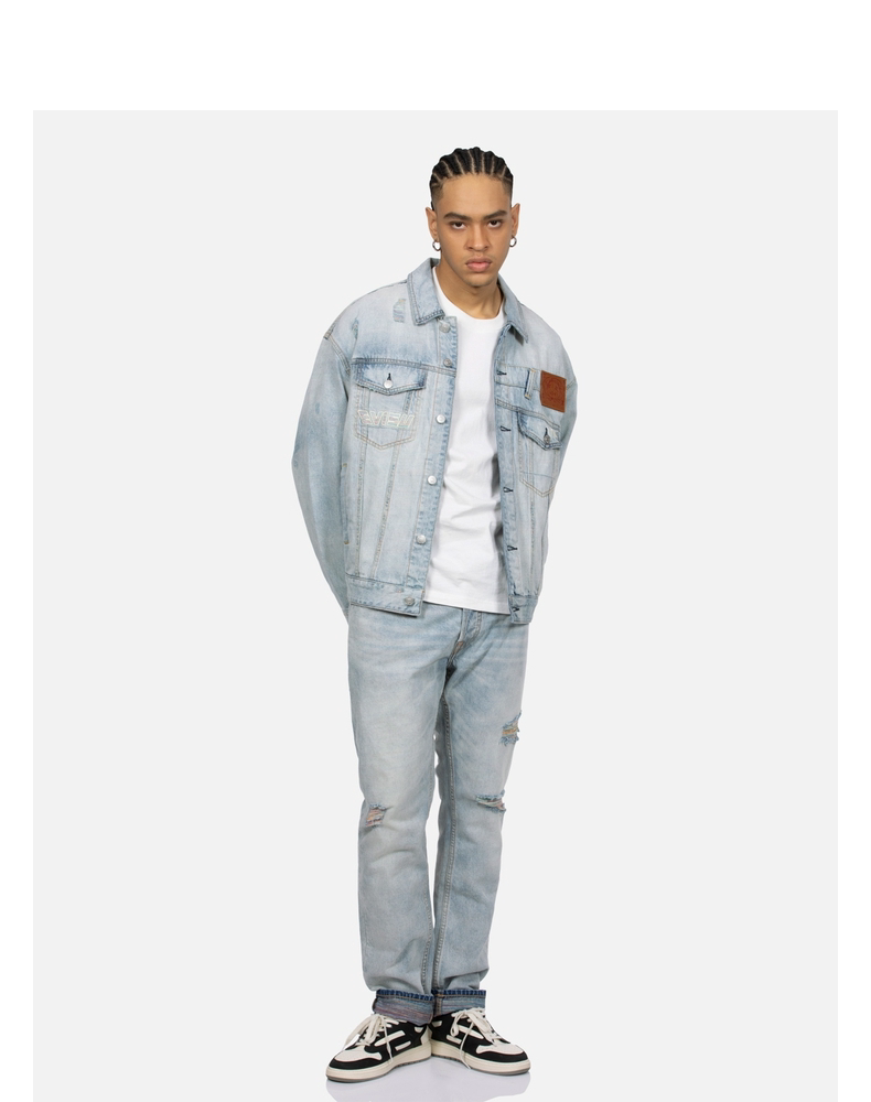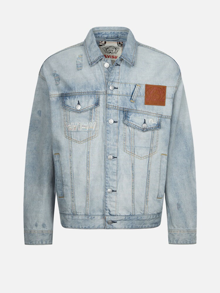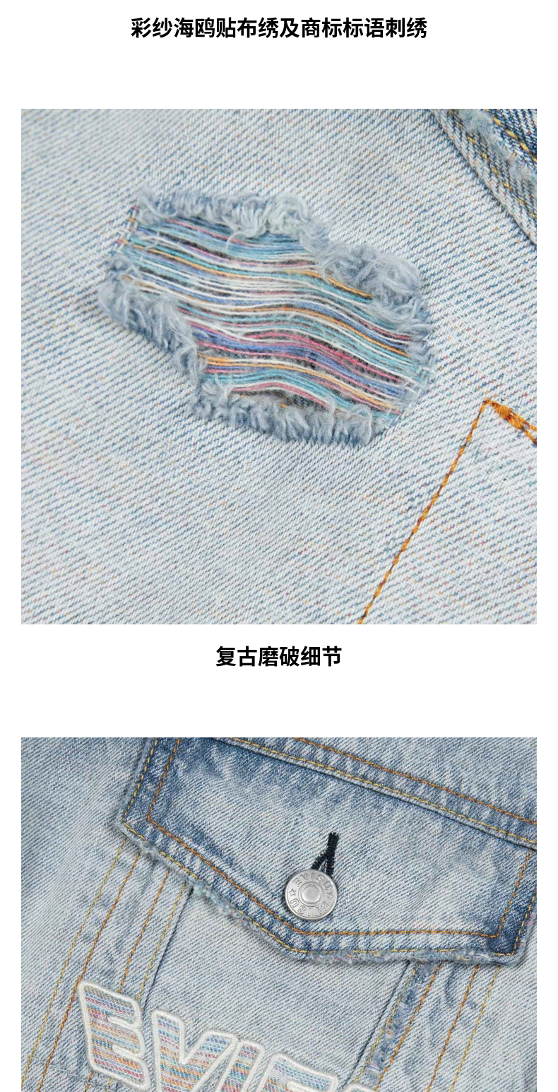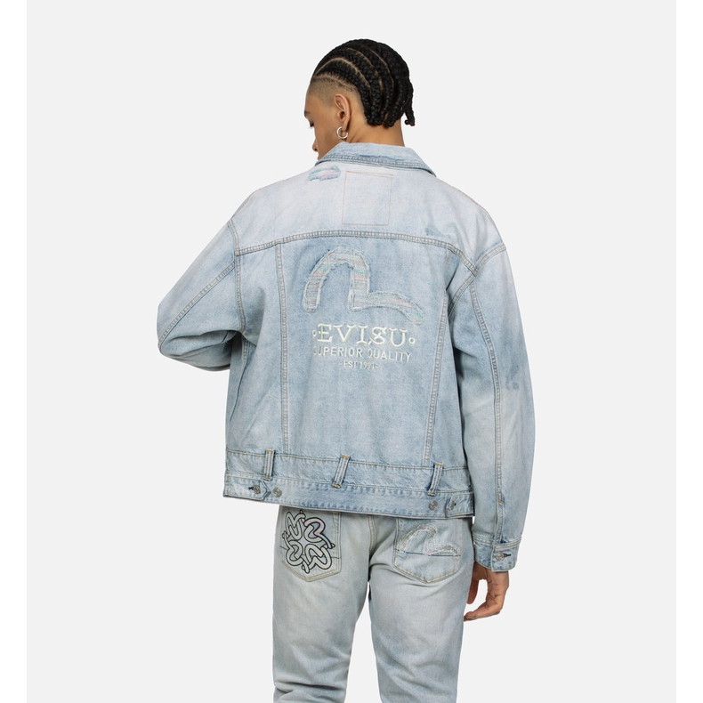 [Тот же стиль, что и у Итана Руана] Мужская повседневная джинсовая куртка EVISU в деконструированном стиле с изображением чайки