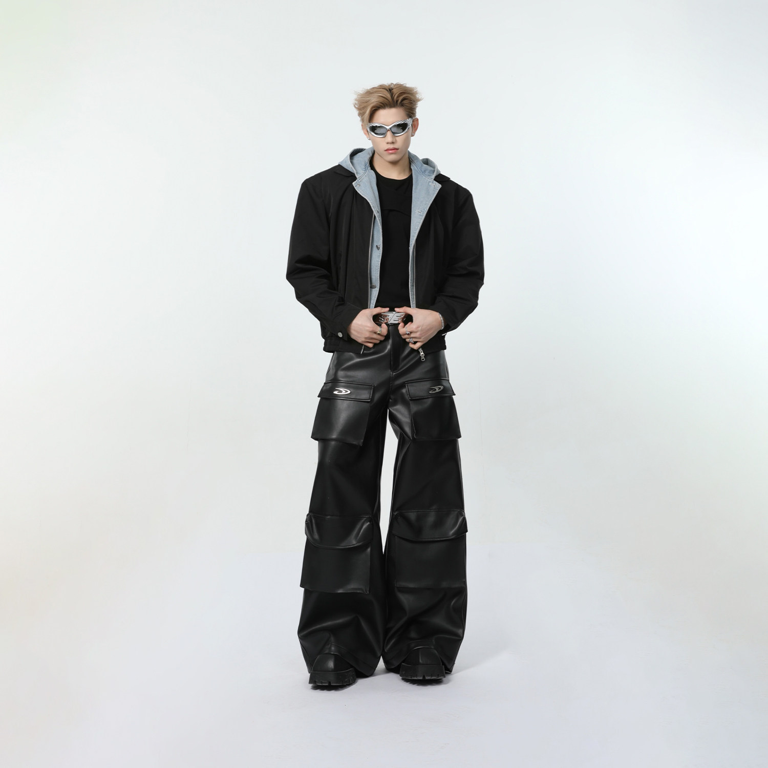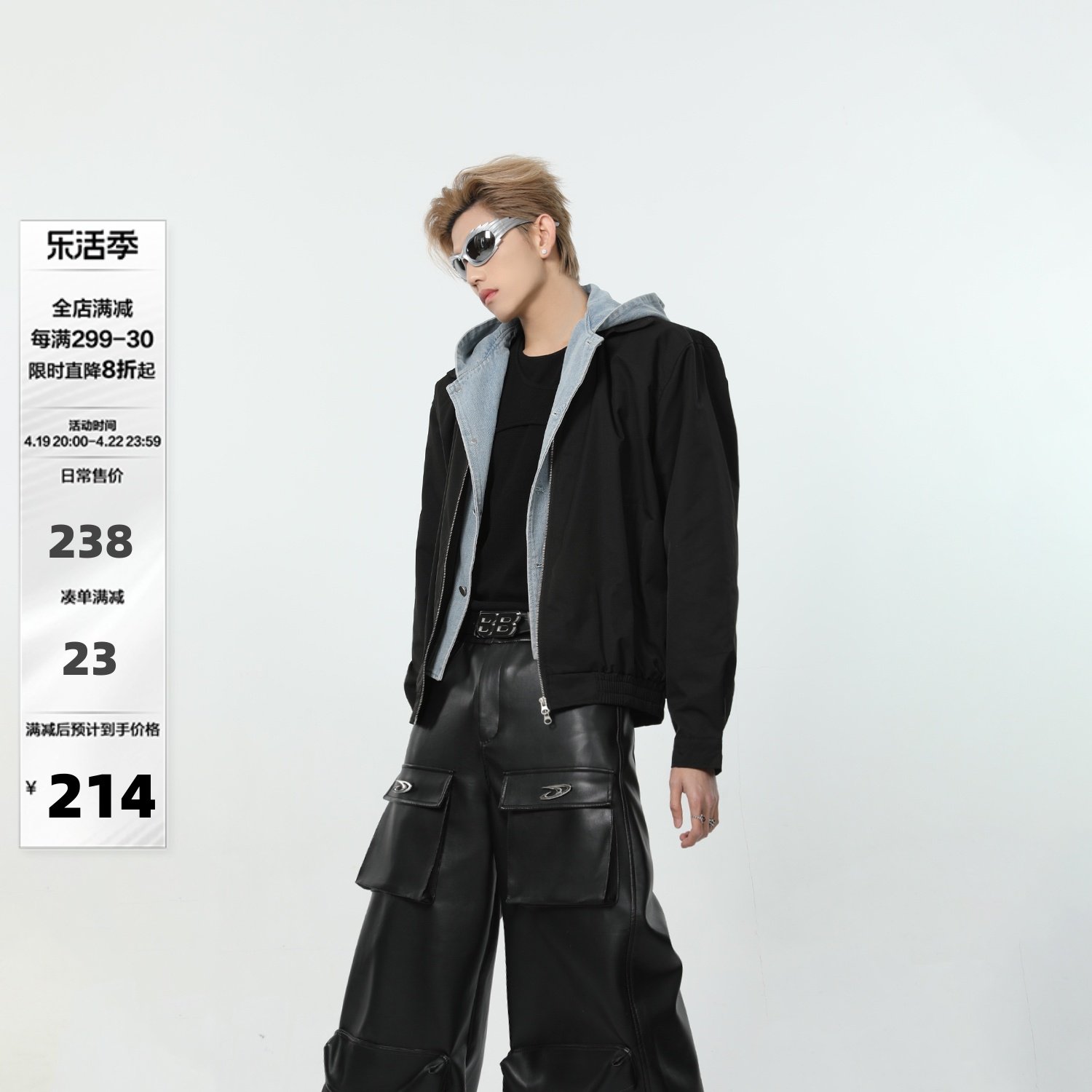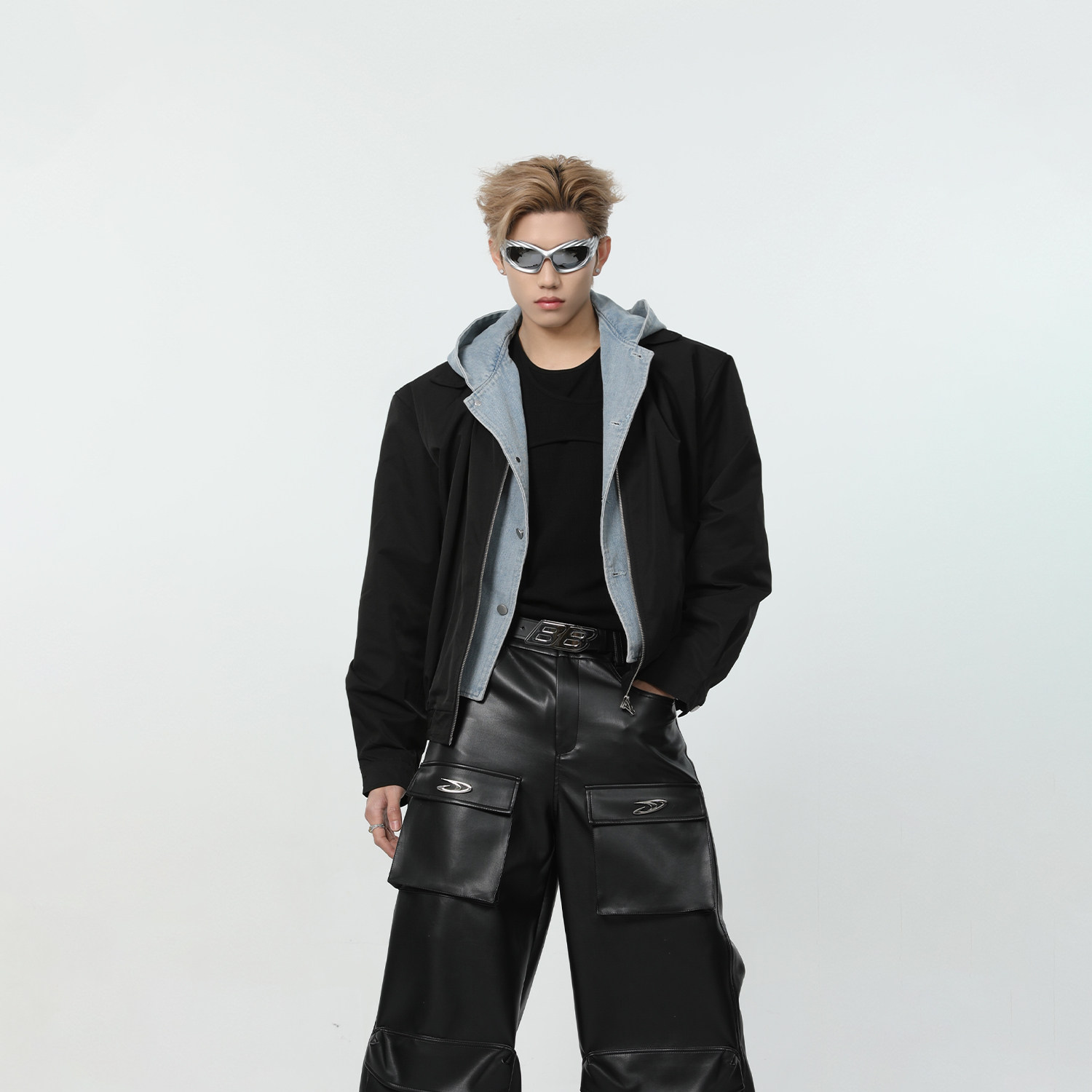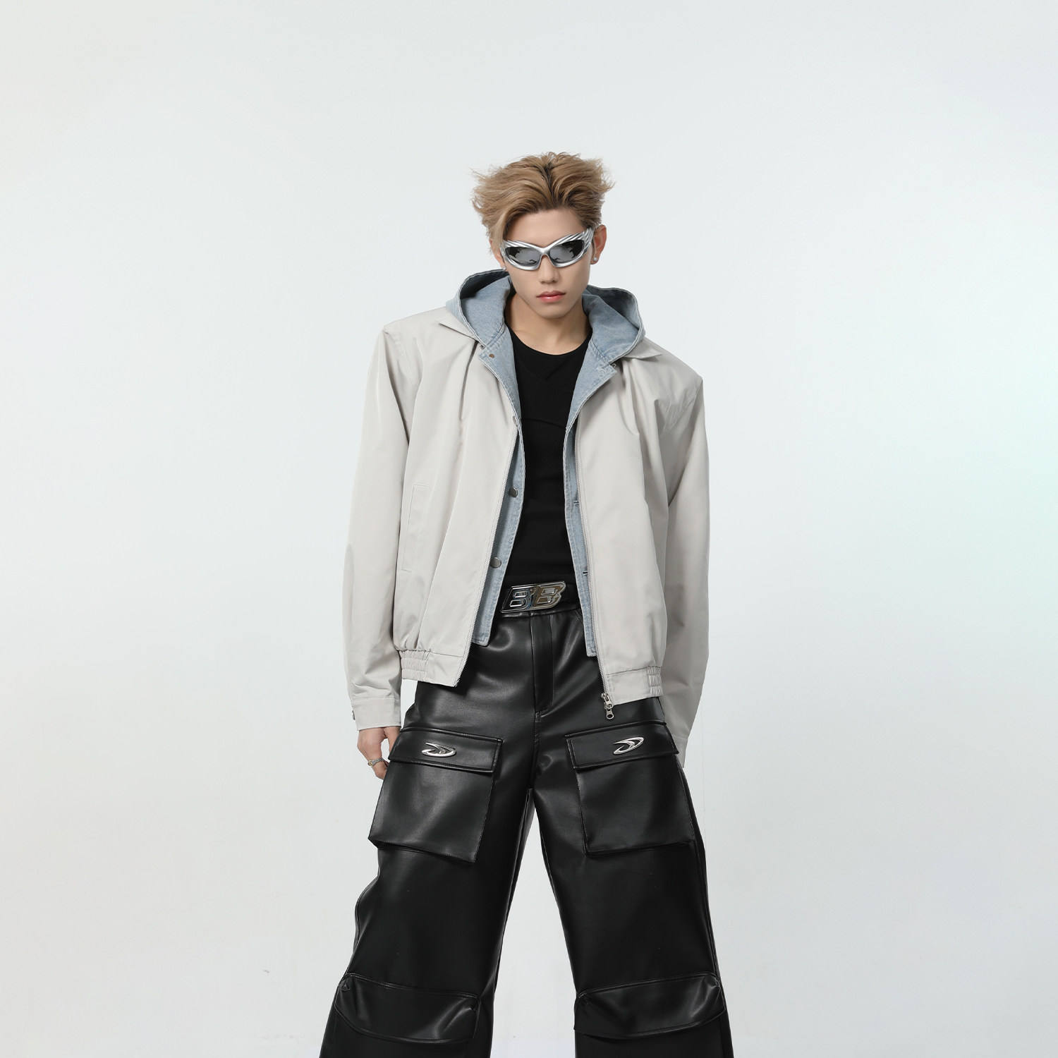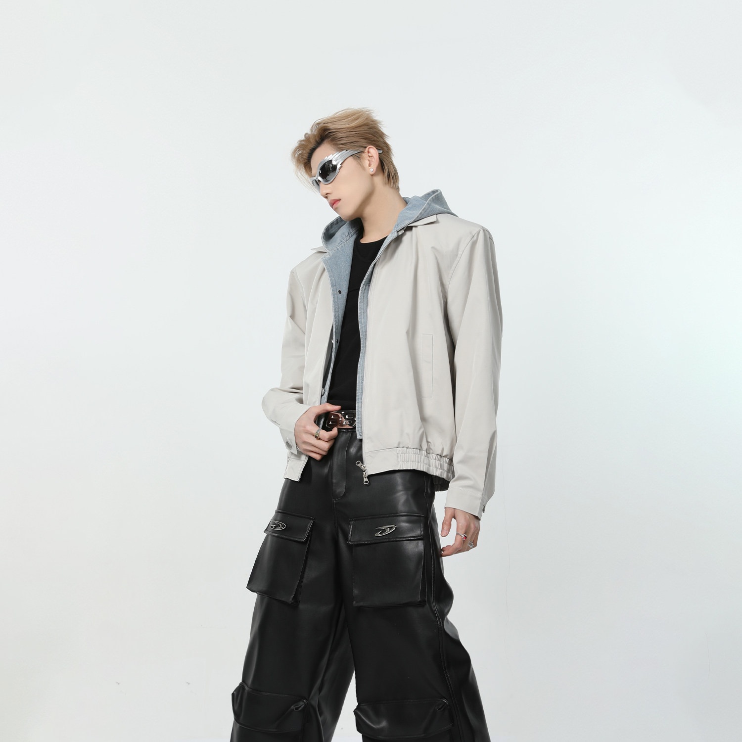 Весенний джинсовый комплект с капюшоном, куртка, наплечники, оверсайз