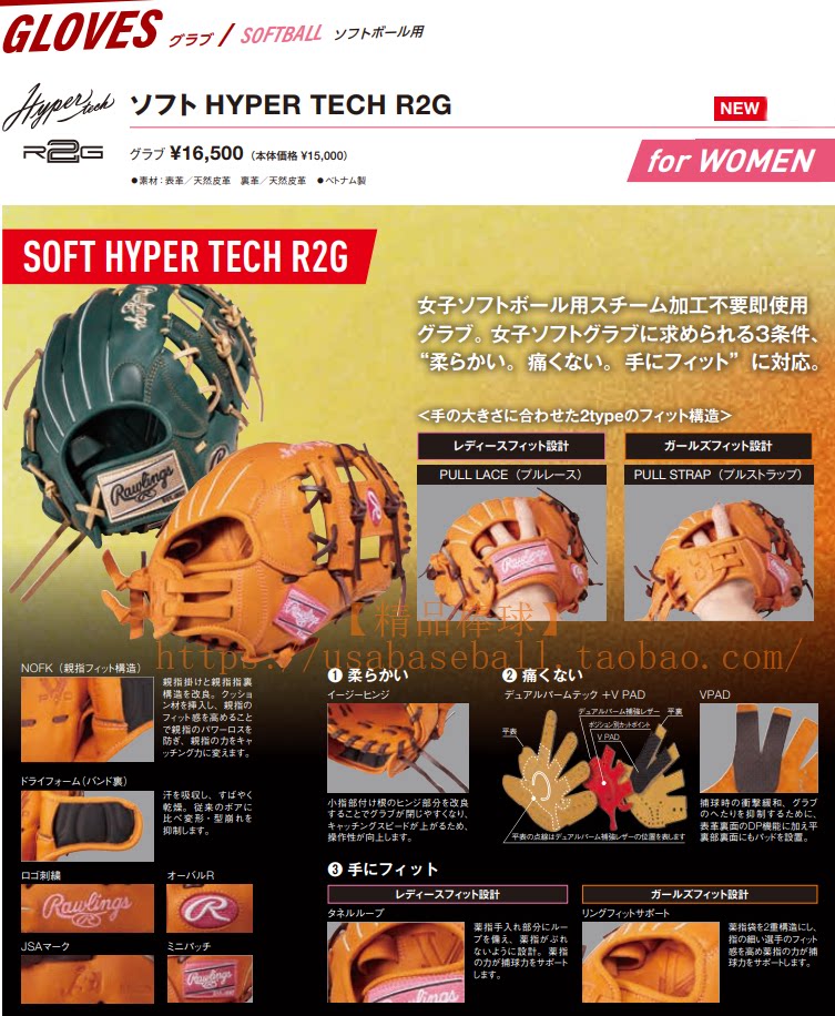 [Бутик бейсбол] Япония Rawlings Hyper Womens Gelish High -End Baseball Farball Внутренние перчатки
