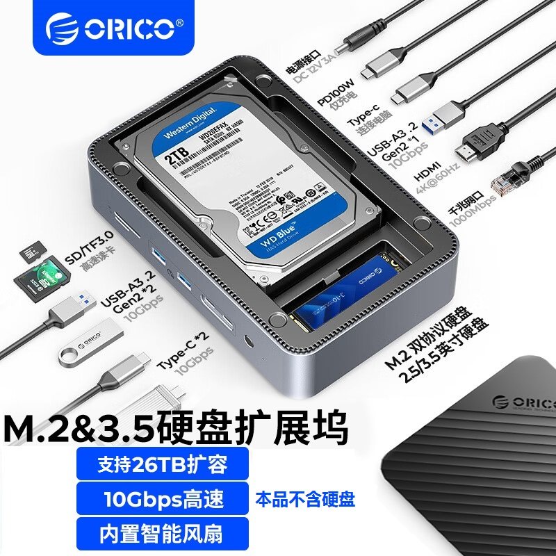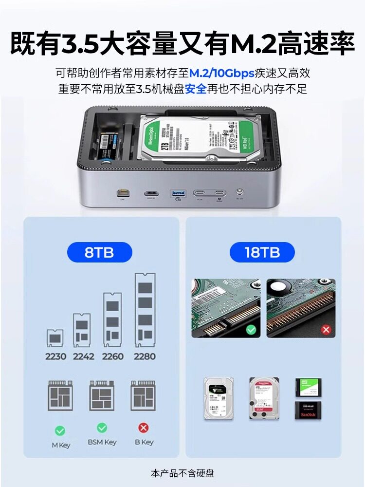 Auri 3,5/2,5/M.2 Расширение Hard Disk Dock Dock/SATA Механическое твердое твердое вещество USB3.2 Док