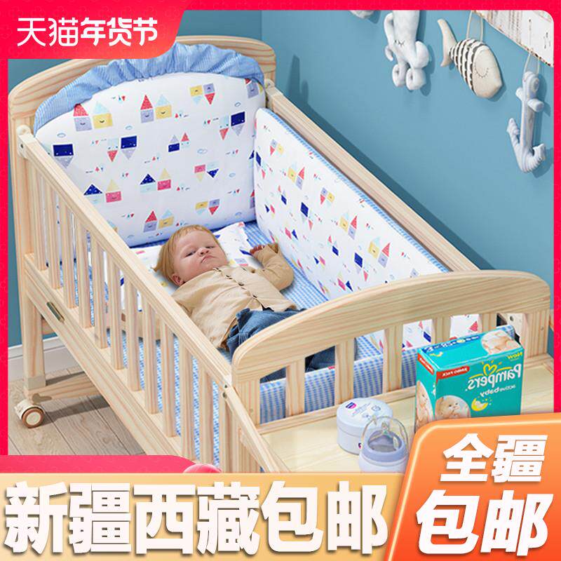 Детская кроватка, универсальная колыбель из натурального дерева для новорожденных для приставной кровати