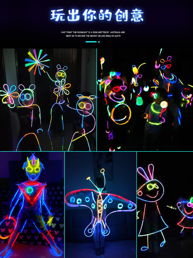 Douyin Интернет знаменитости флуоресцентная палочка детская нетоксичная липкая одежда светящаяся игрушка светящаяся флуоресцентная полоска крупье реквизит креатив