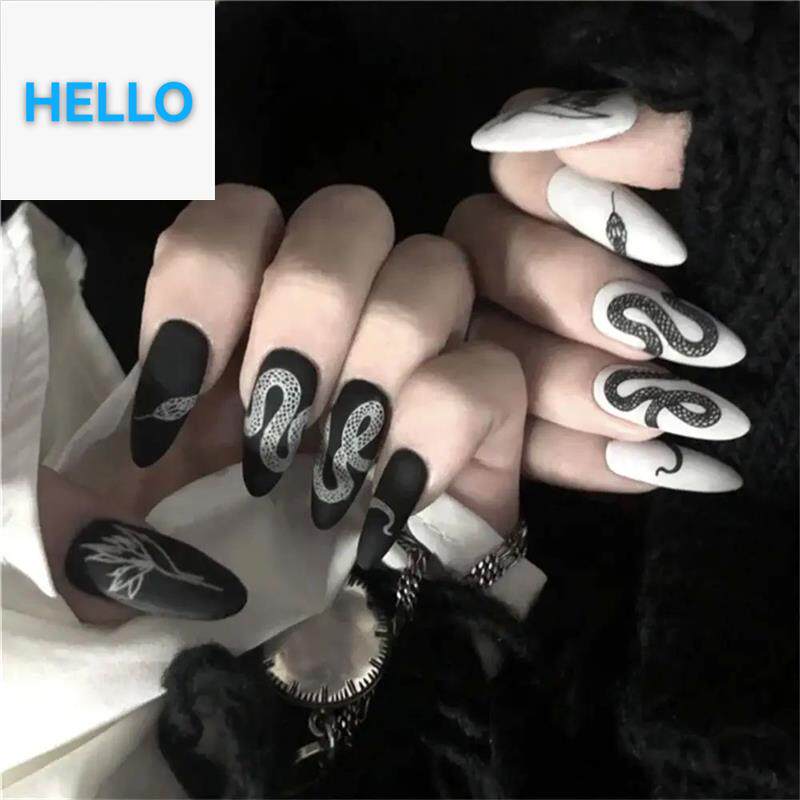 24pcs/set Long Stiletto Fake Nails Punk Snake Pattern Black