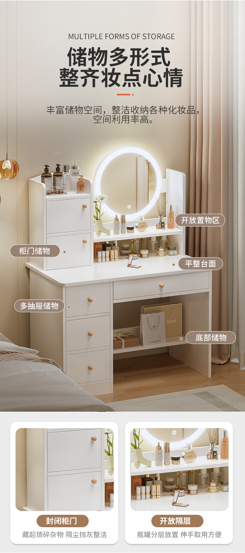 Священный столик для спальни Простой и современный 2024 Новое хранилище макияжа -в одном макияжном столе небольшой квартиры.