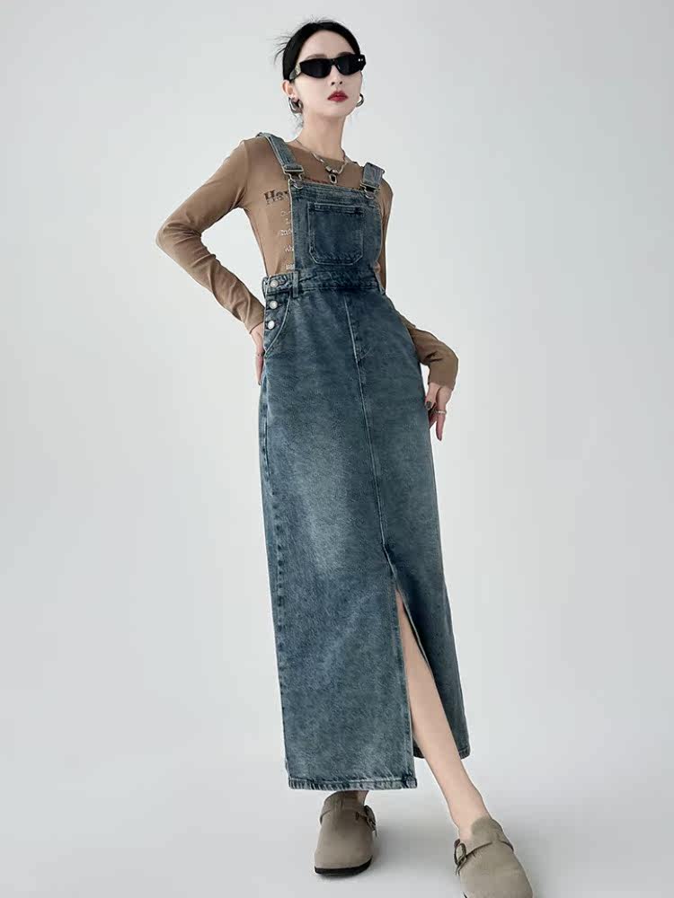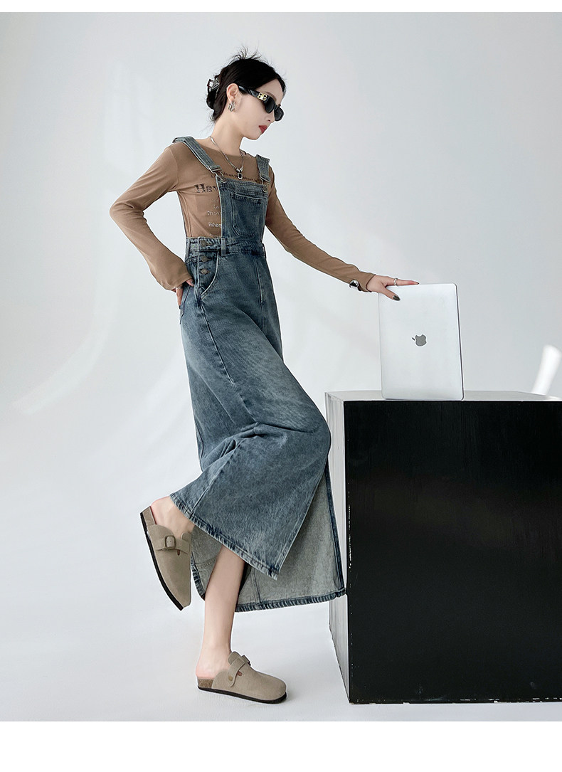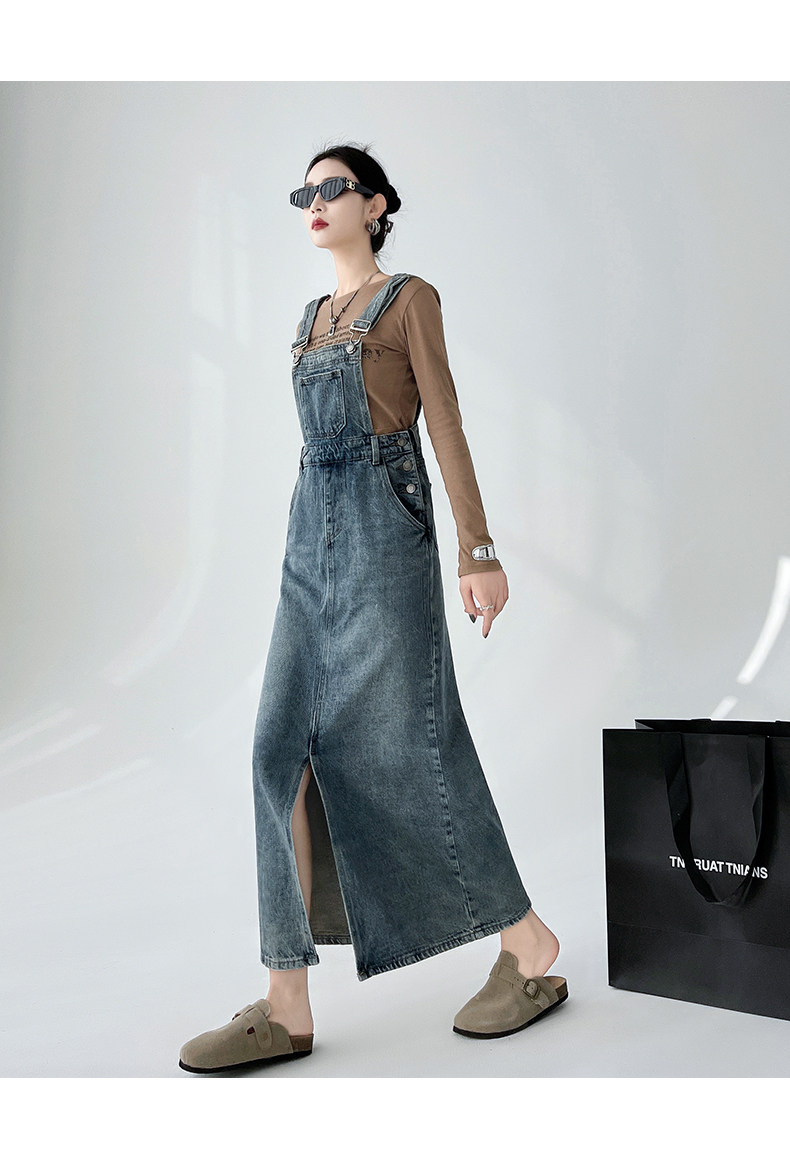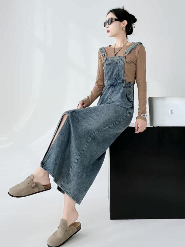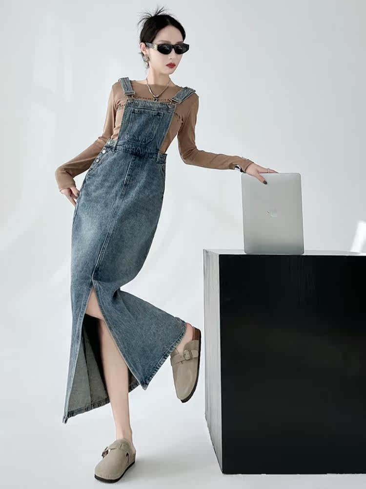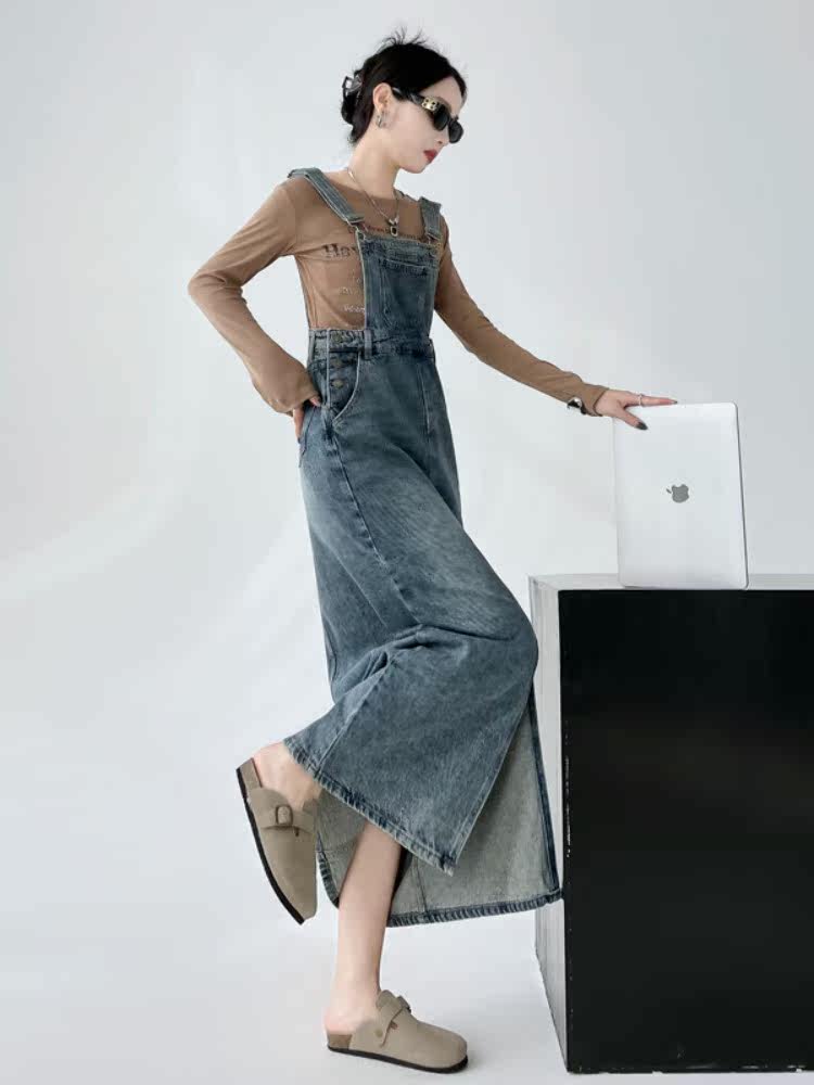 Ретро джинсовое платье, весенняя дизайнерская юбка, в корейском стиле, тренд сезона, свободный крой