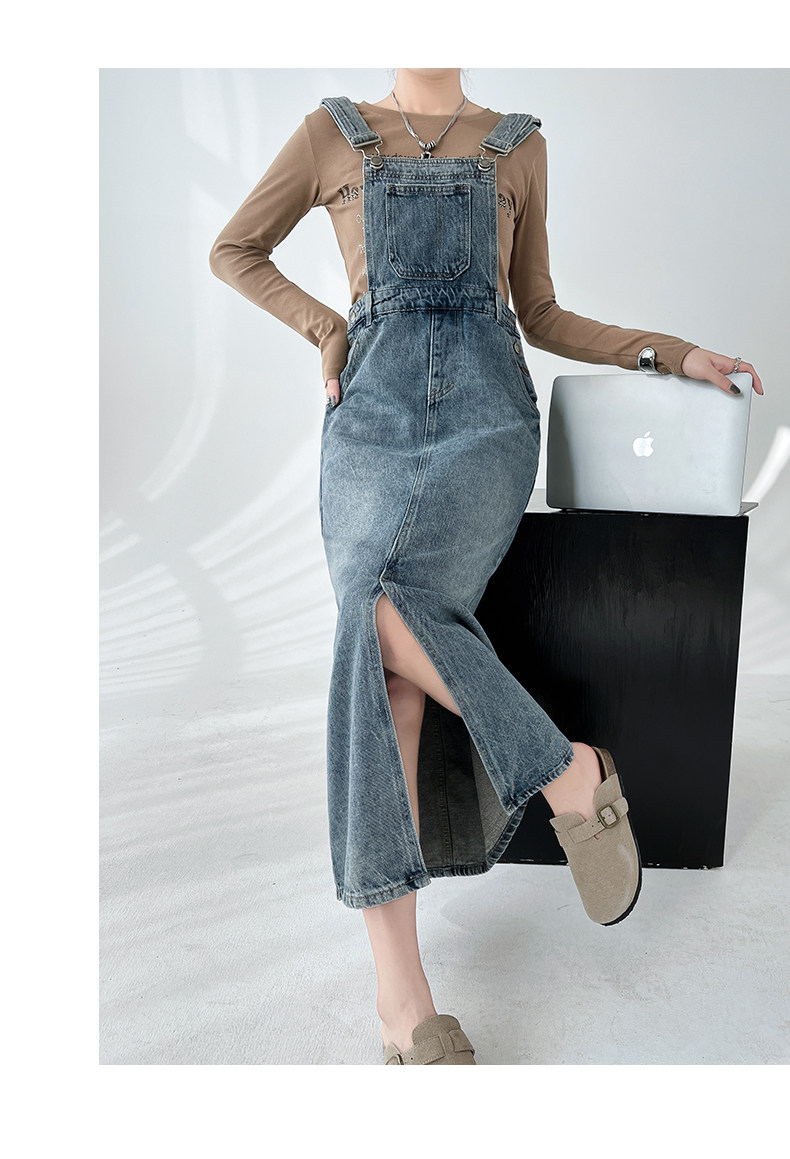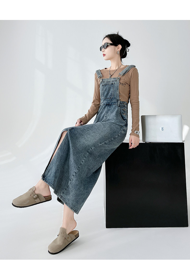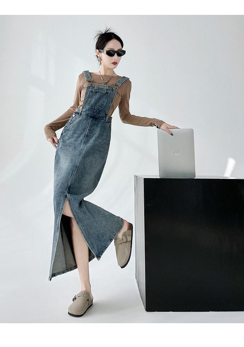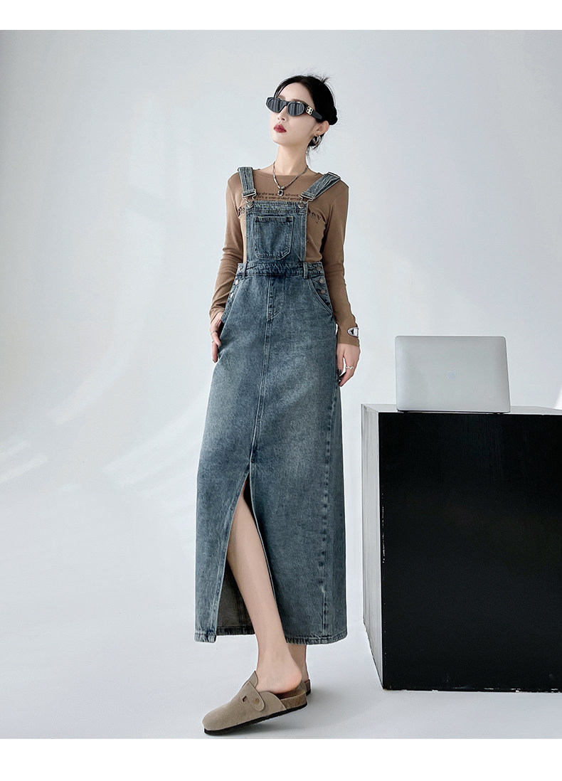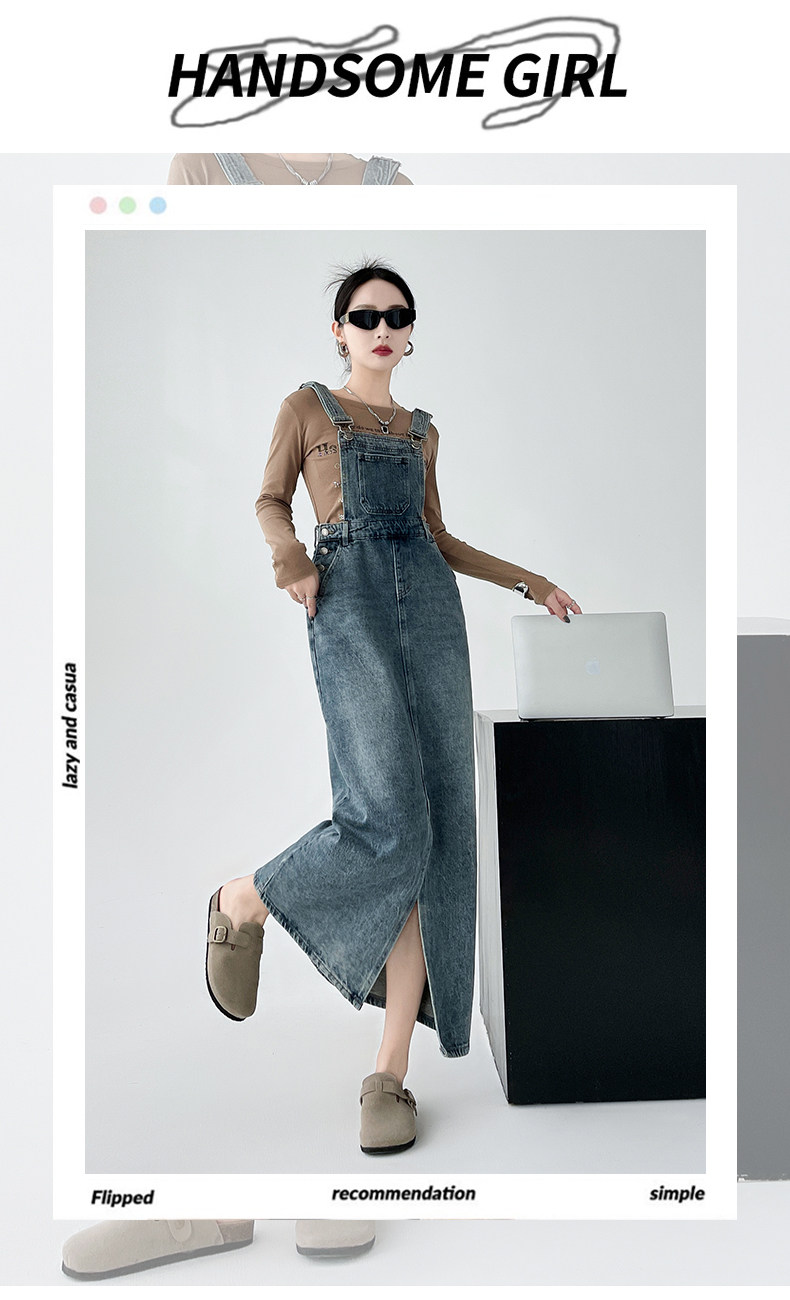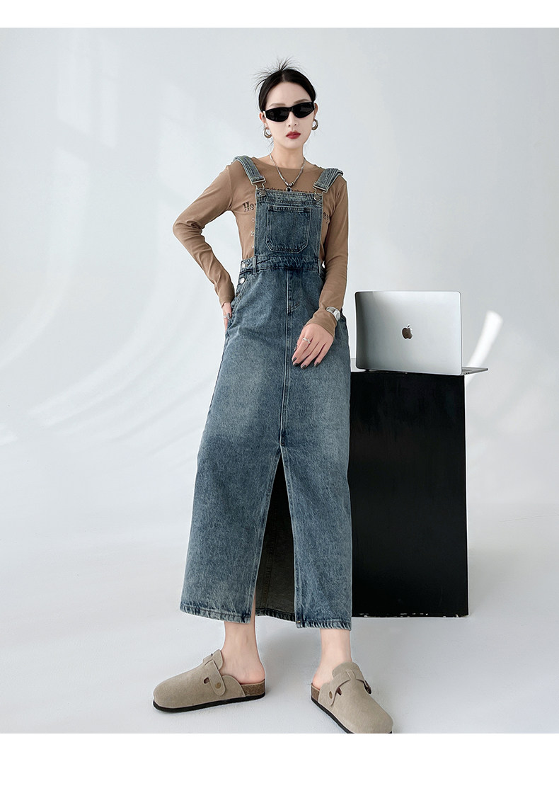 Ретро джинсовое платье, весенняя дизайнерская юбка, в корейском стиле, тренд сезона, свободный крой