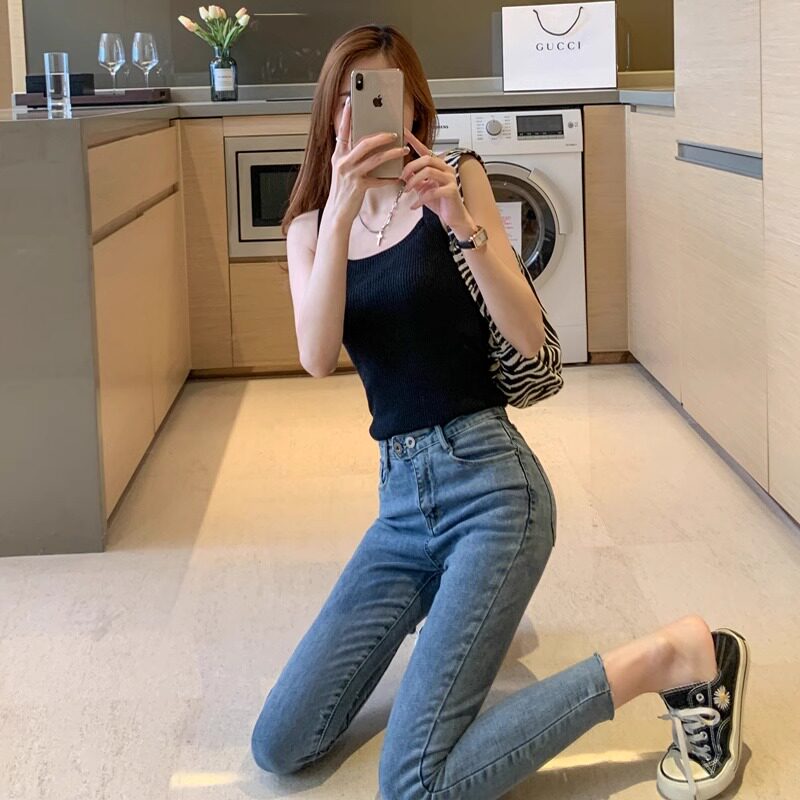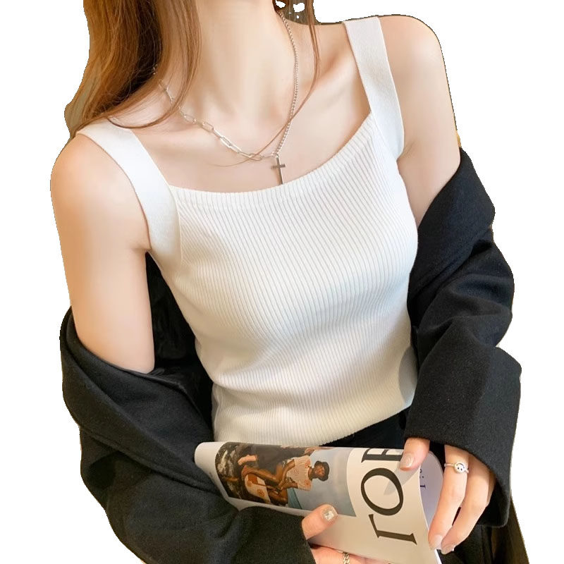 Костюм, белая майка, осенний базовый топ с чашечками, приятная телу футболка без рукавов, облегающий крой