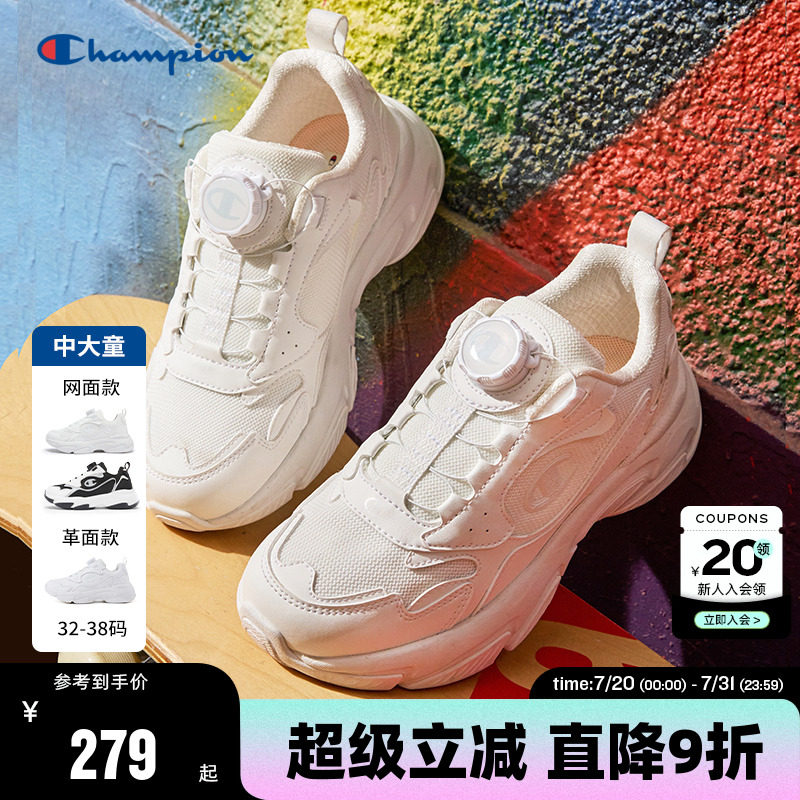 Детская обувь Champion, 25 новых спортивных дышащих кроссовок в стиле ретро с поворотной пряжкой для мальчиков и девочек, маленькие белые туфли