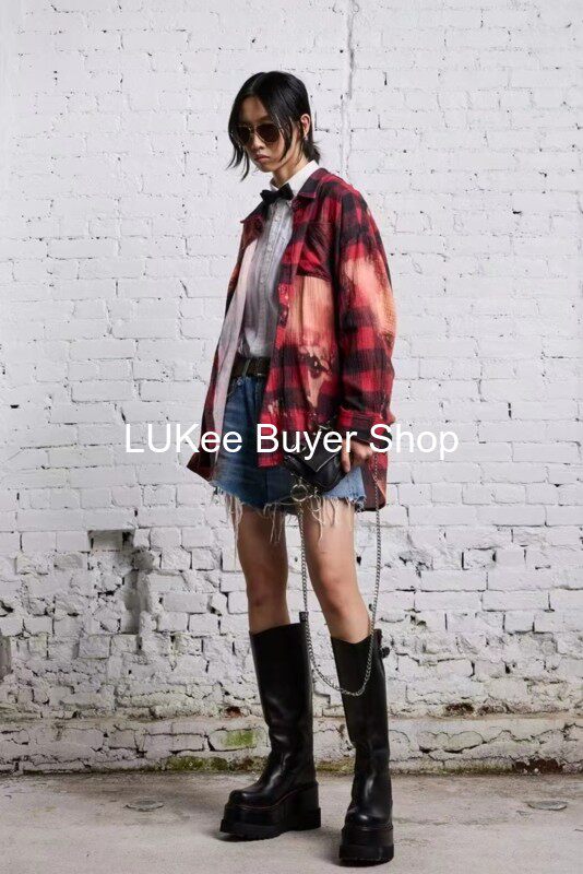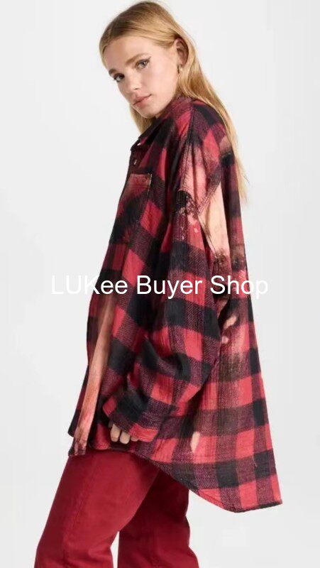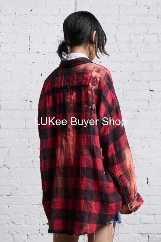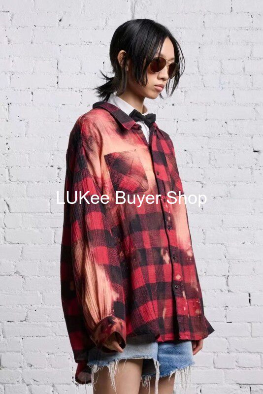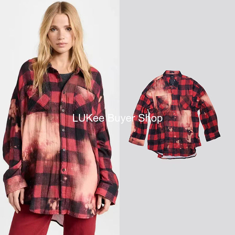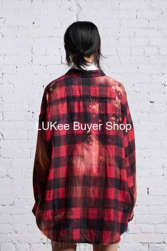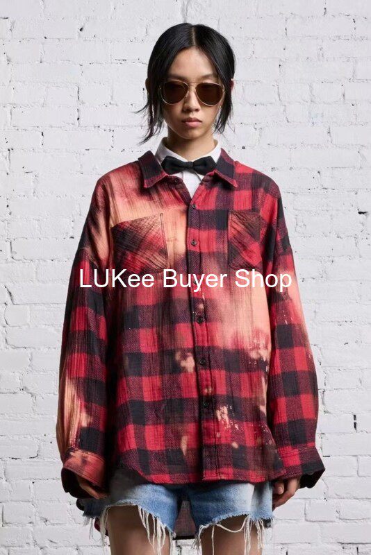 Покупатель настоящий американская рубашка R13 Новорологическая метеорологическая красная, старая хлопковая хлопковая черная красная краска сетка свободная рубашка