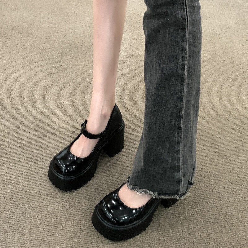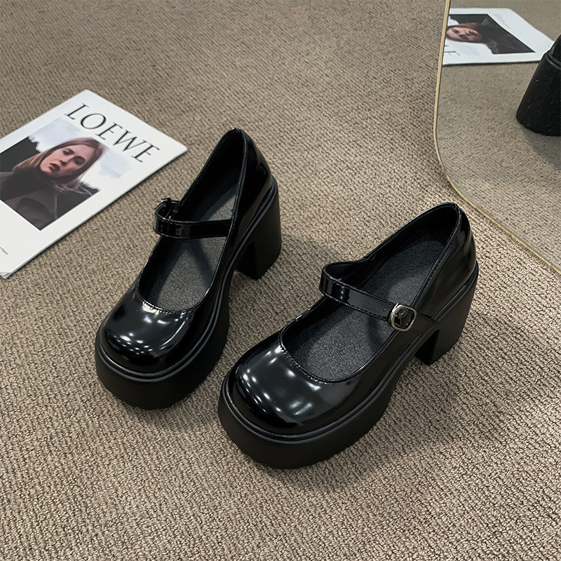 Демисезонная высокая обувь на высоком каблуке на платформе для кожаной обуви, французский стиль, против усталых ног, модель весна/осень 2024 года