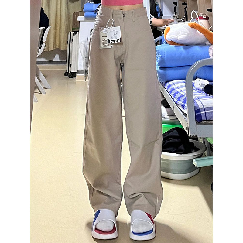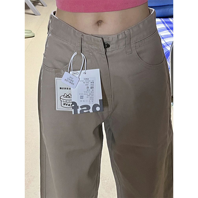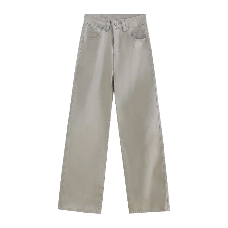 Хаки весенние джинсы, штаны, высокая талия, свободный прямой крой