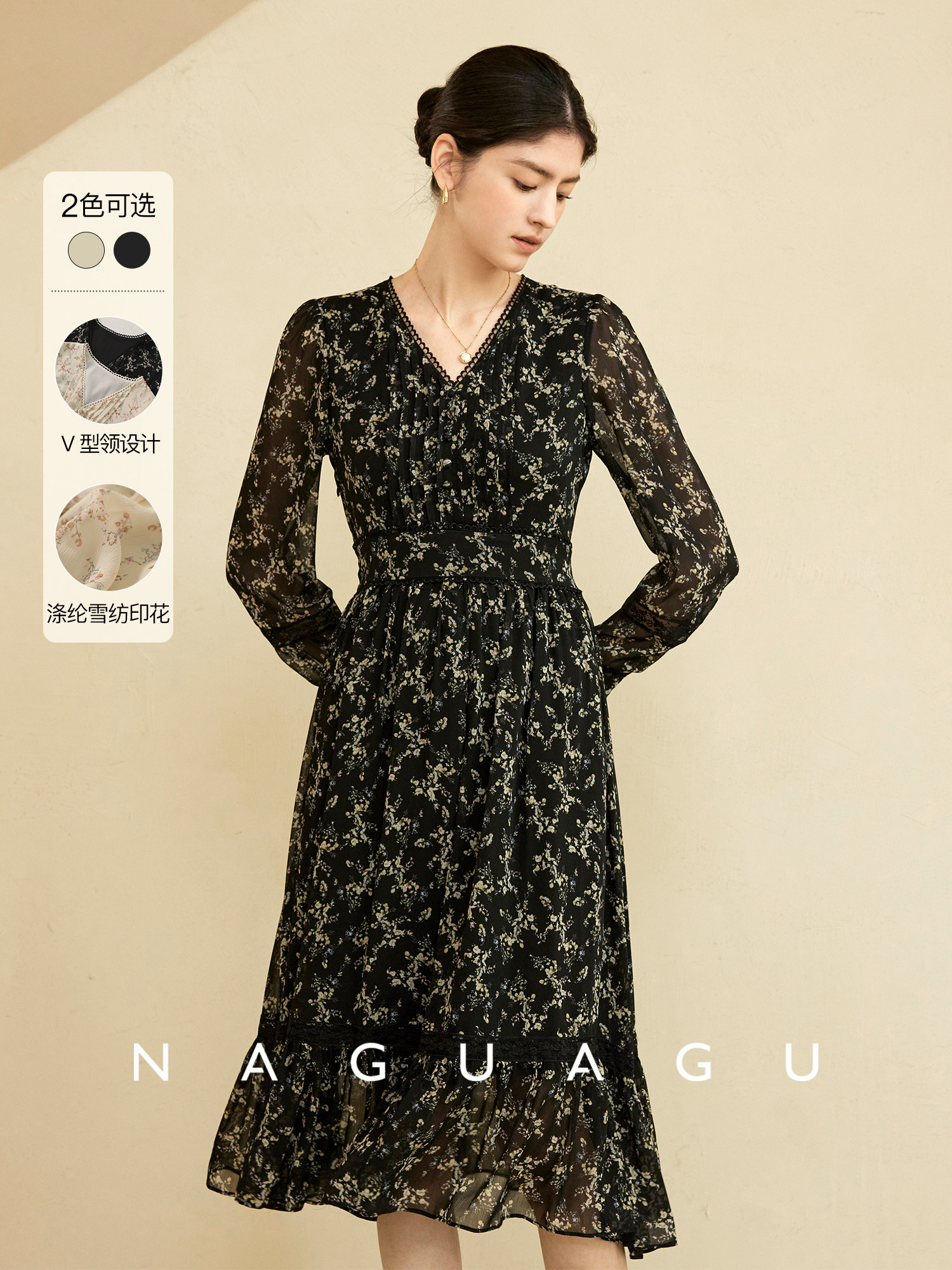 Тыква Губатон усадьба свет и элегантная шифоновая ткань TE Специальное ремесло v -neck