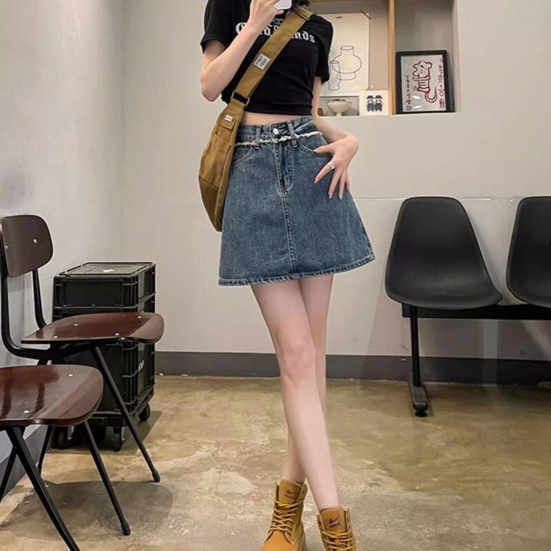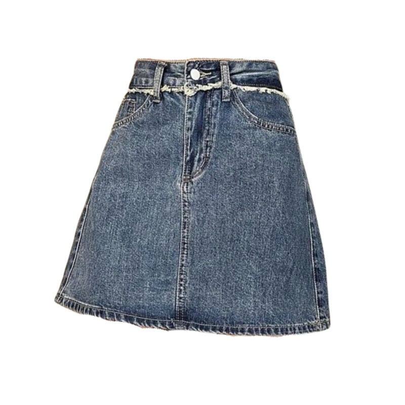 Джинсовая летняя джинсовая юбка, высокая талия, А-силуэт