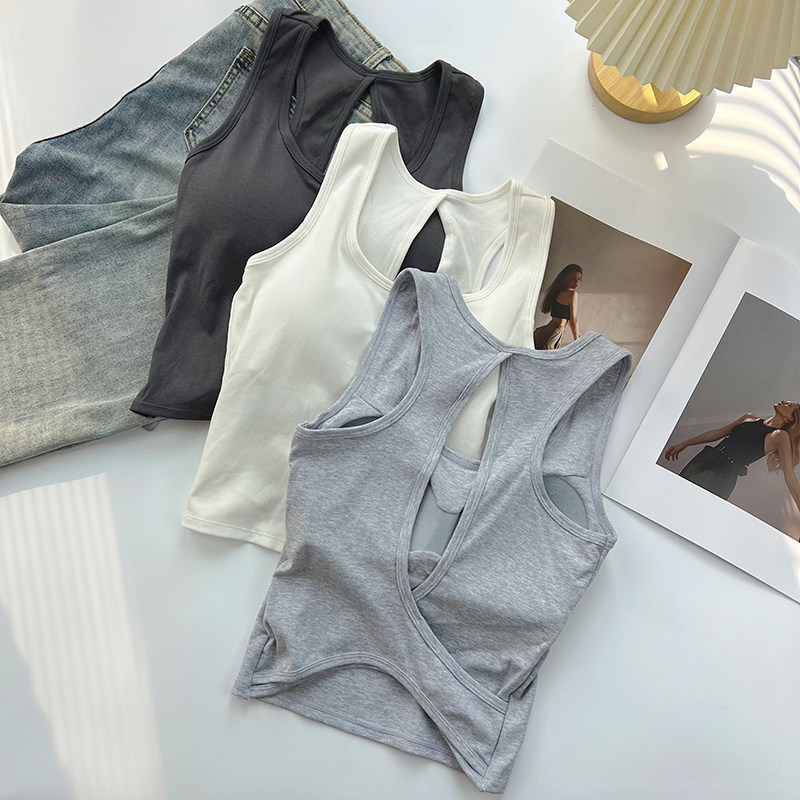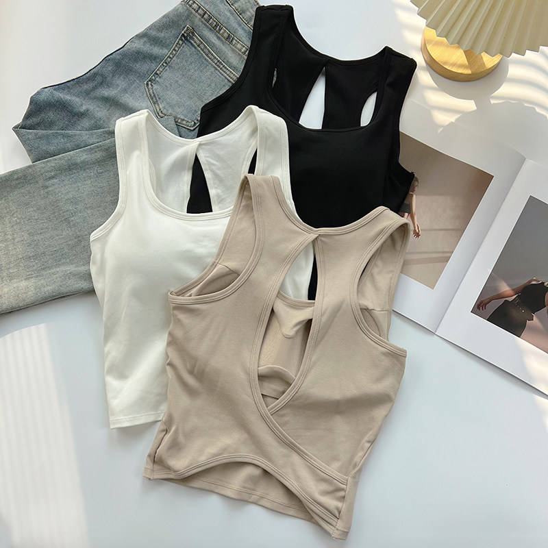 Сексуальная майка топ, базовый топ с чашечками без рукавов, красивая спина