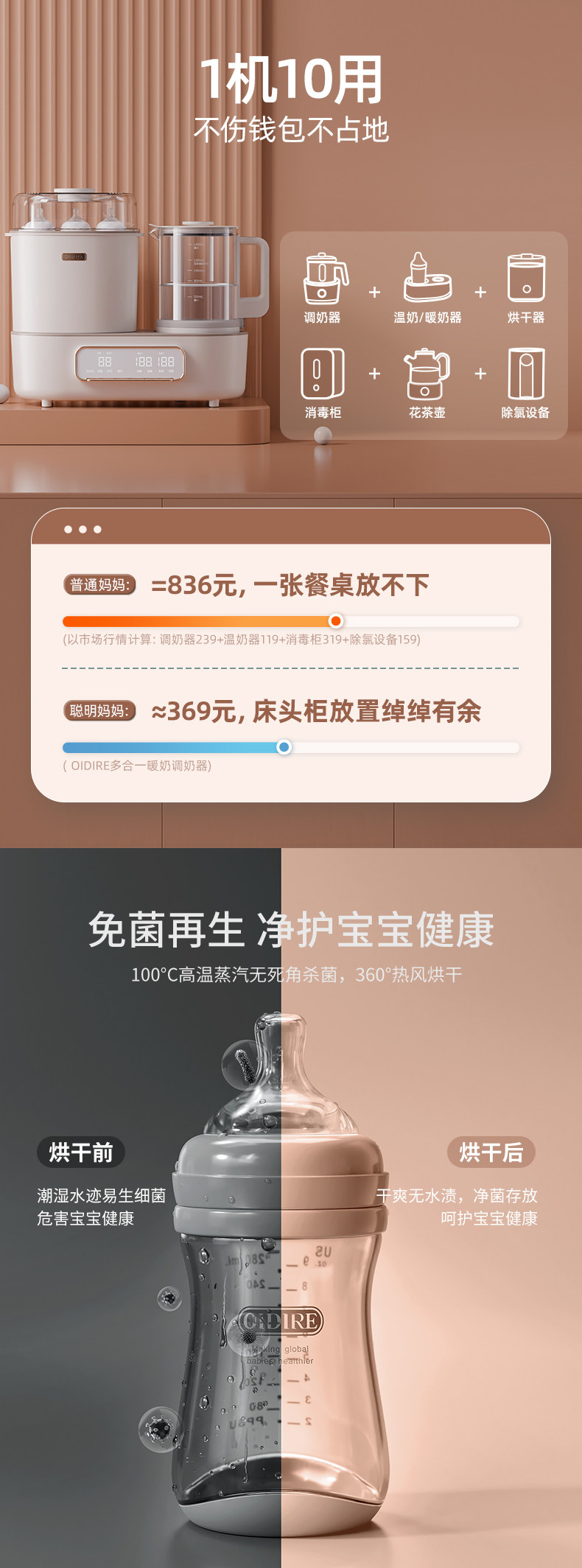 OIDIRE Антибактериальная бутылочка для кормления, чайник, подогреватель молока, молокоотсос, поддерживает постоянную температуру, «три в одном»