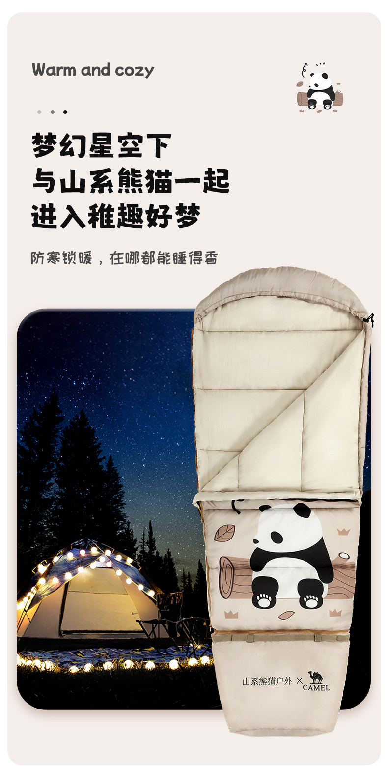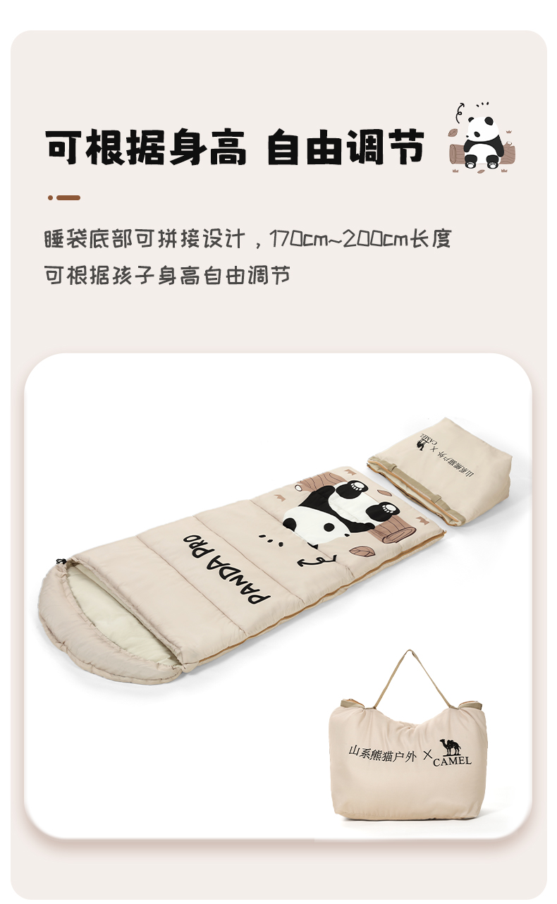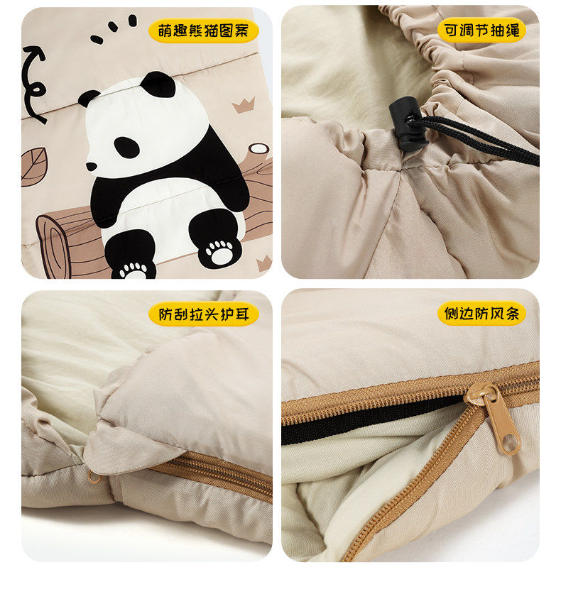 Дорожный летний удерживающий тепло спальный мешок для кемпинга для школьников, панда, увеличенная толщина