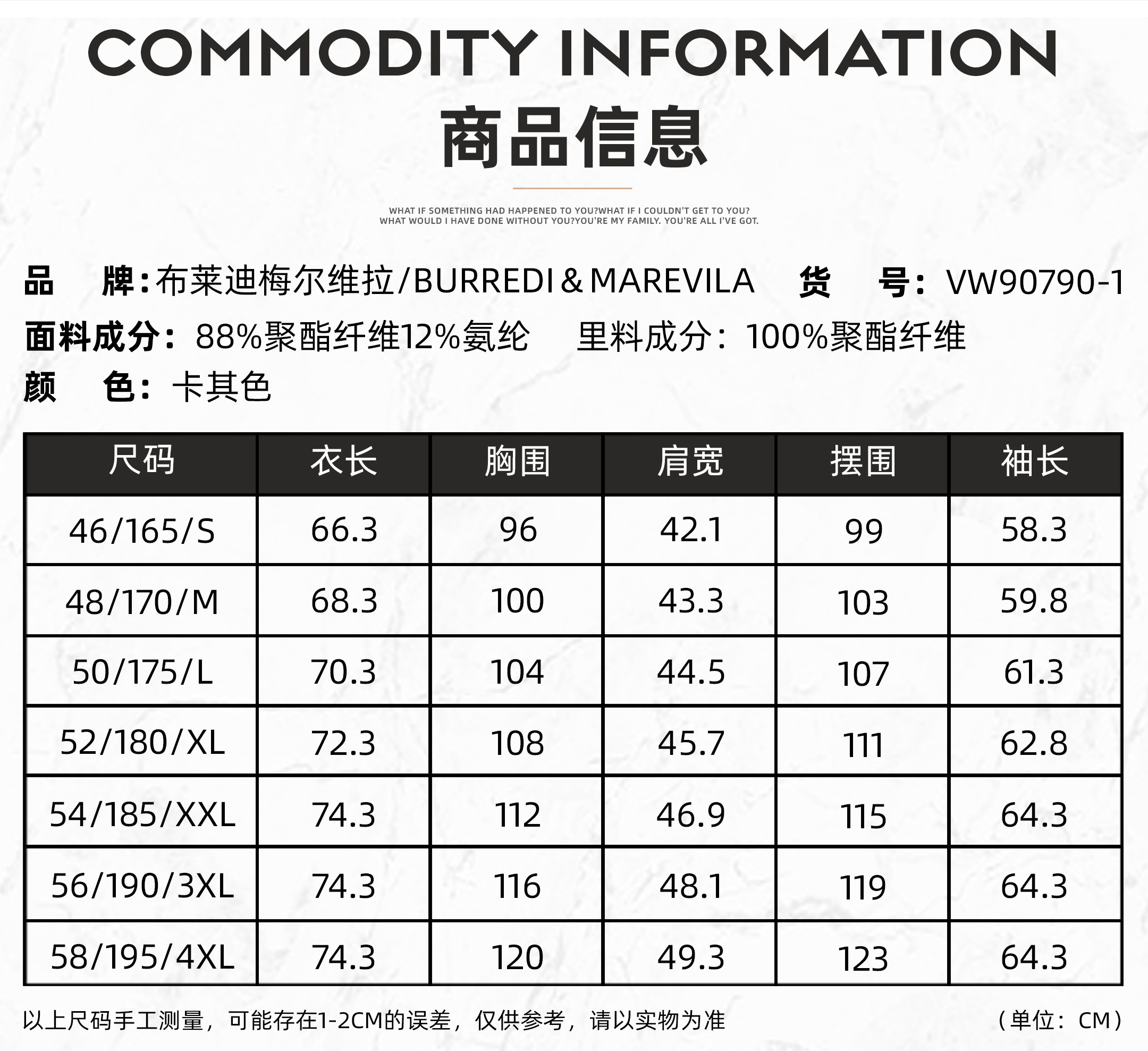 | Размер: | 46/165/S, 48/170/M, 50/175/L, 52/180/XL, 54/185/XXL, 56/190/XXXL, 58/195/XXXXL, Код точного размера, пожалуйста, проконсультируйтесь с обслуживанием клиентов |