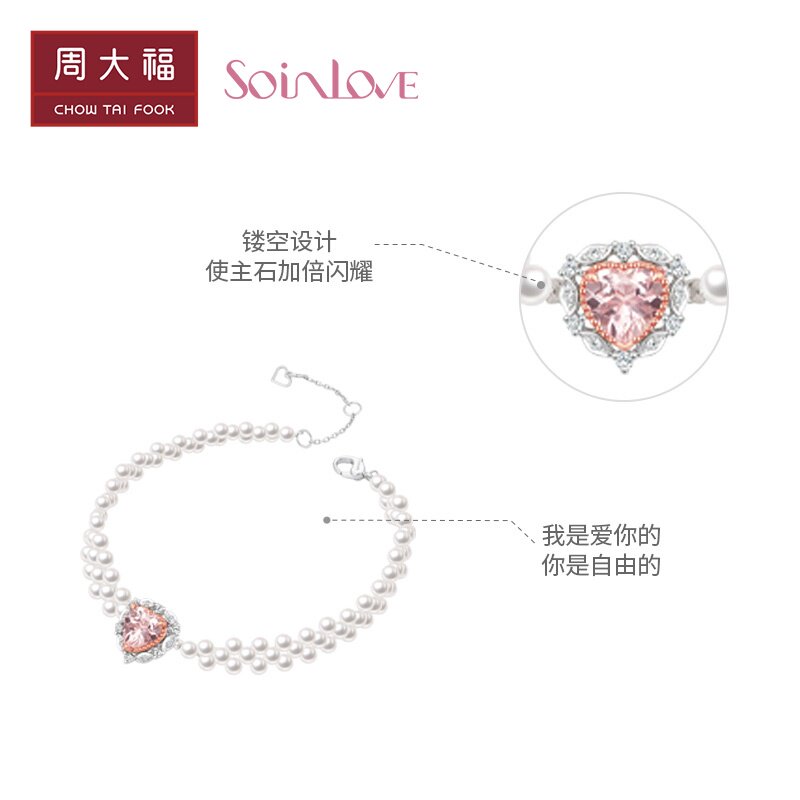 周大福 Soinlove Heart Loves Laurel Heart 18K Morgan Stone Diamond Bracelet Женский VV252