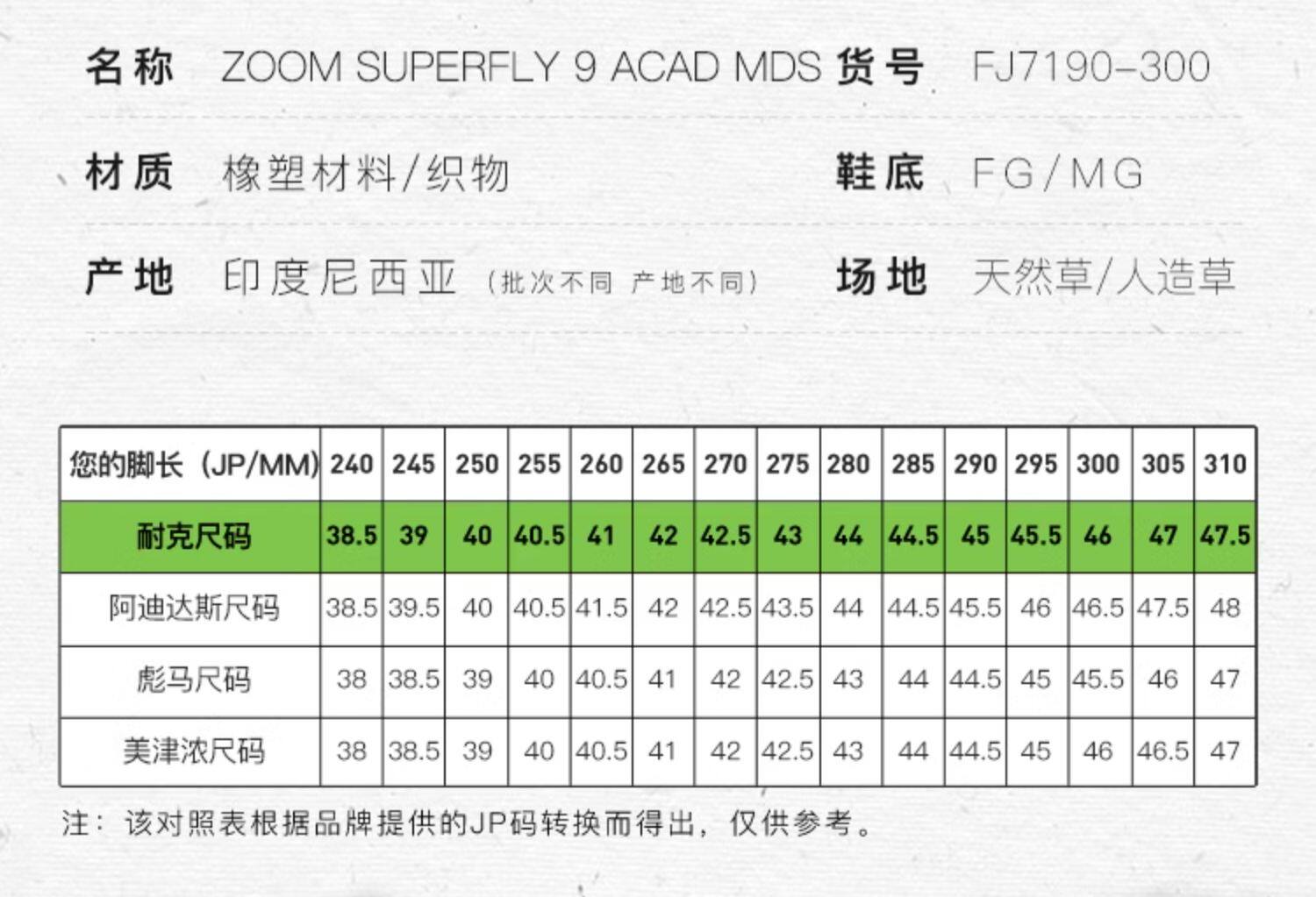 | Размер обуви: | 38,5 (240JP), 39 (245JP), 40 (250JP), 40,5 (255JP), 41 (260jp), 42 (265JP), 42,5 (270JP), 43 (275JP), 44 (280jp), 44,5 (285JP), 45 (290JP), 45,5 (295JP), 46 (300JP) |