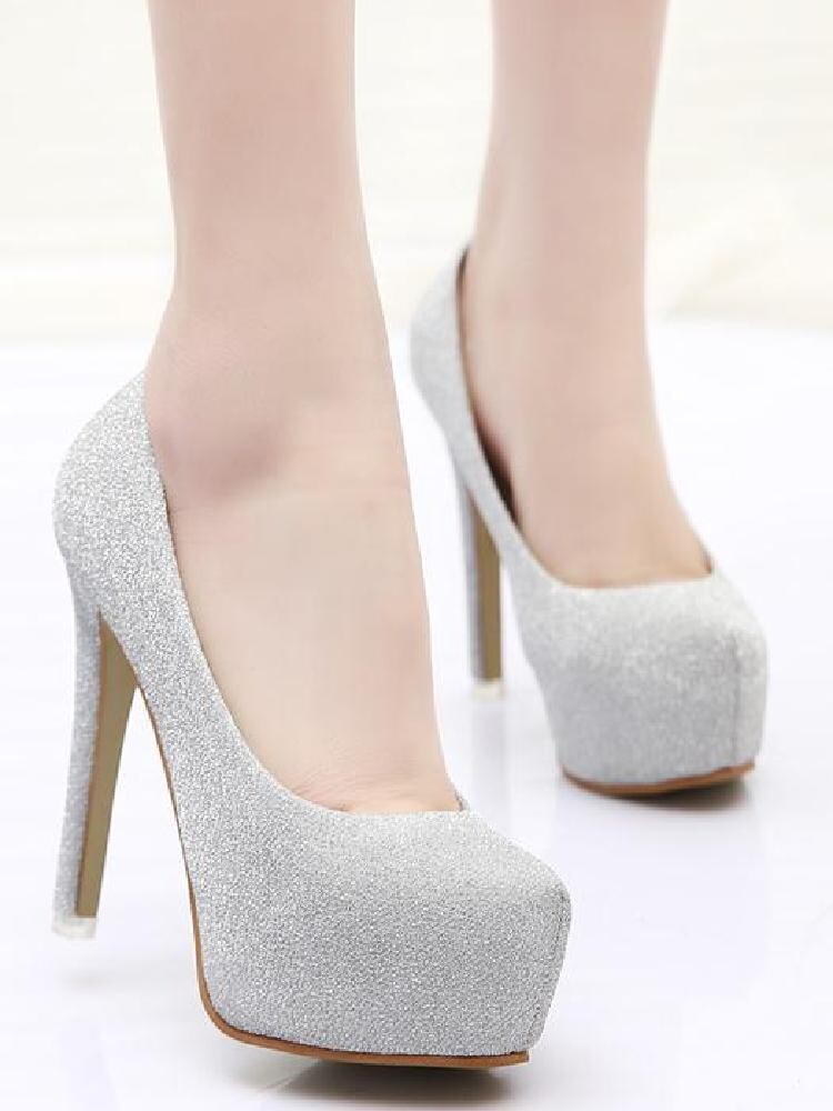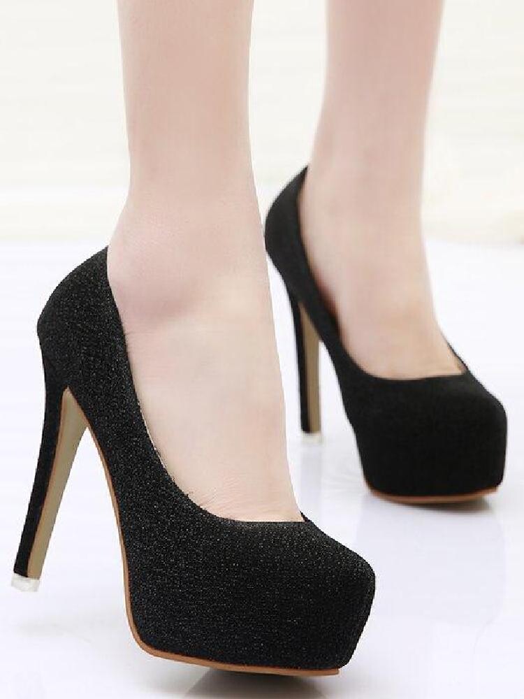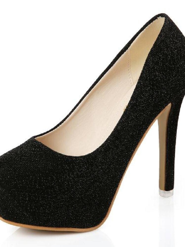 Высокие каблуки, туфли на шпильке, водонепроницаемая платформа с круглым носком, модные туфли с блестками высотой 11 см для ночного клуба 2024 года, новые высокие каблуки, женские одиночные туфли для танцев