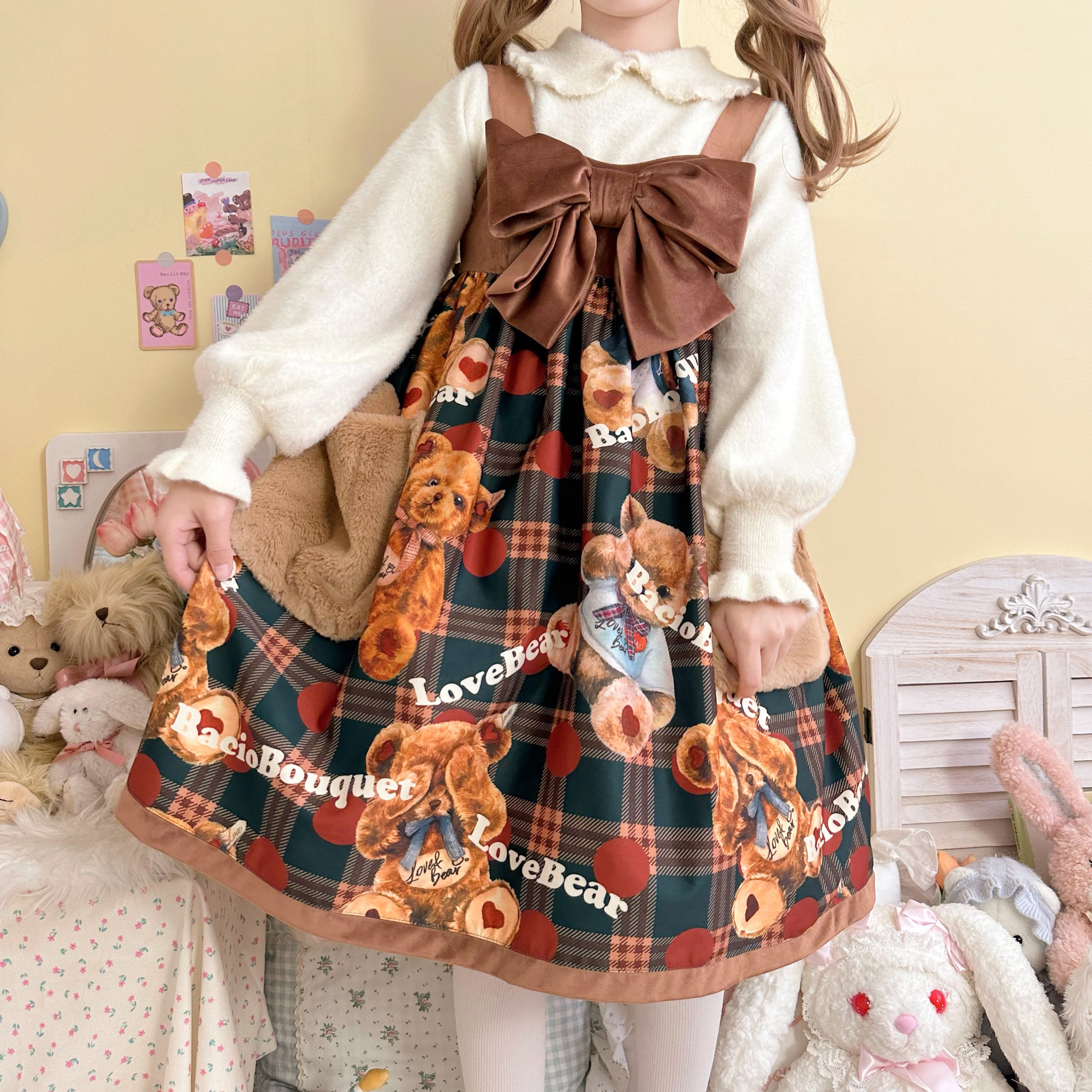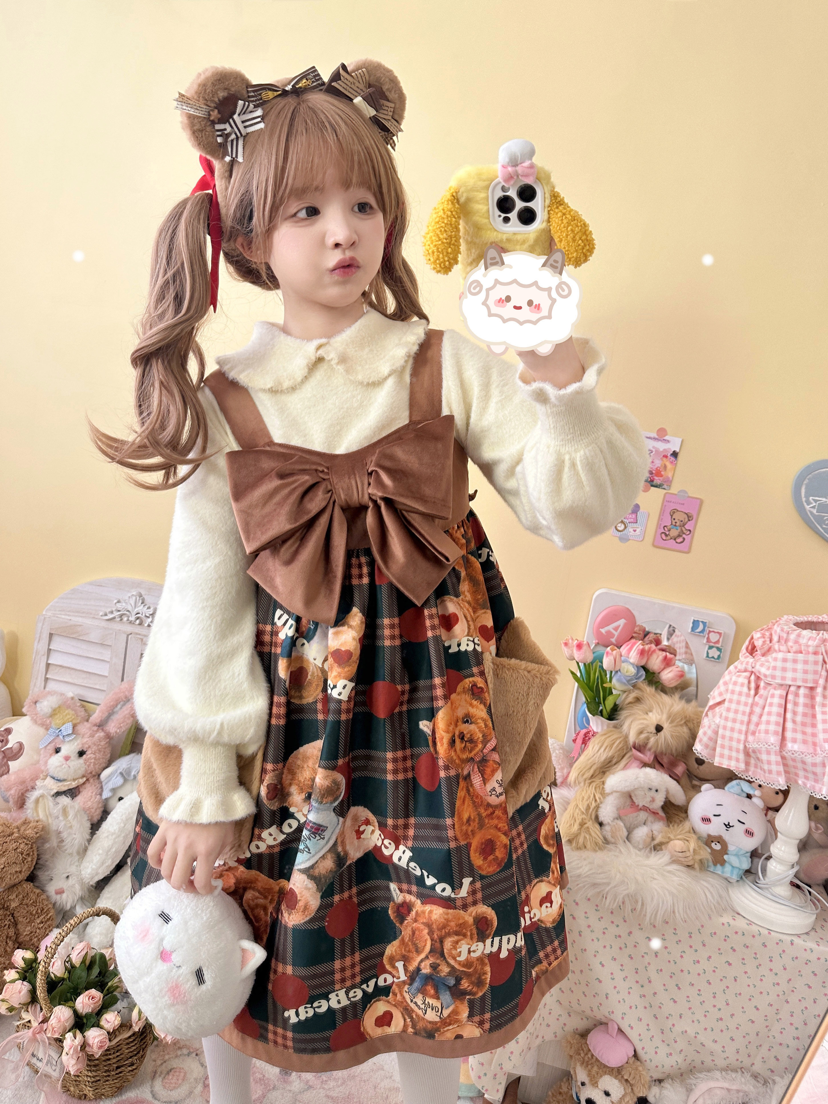 Бархатный демисезонный базовый милый трикотажный удерживающий тепло свитер, рукава фонарики, стиль Лолита