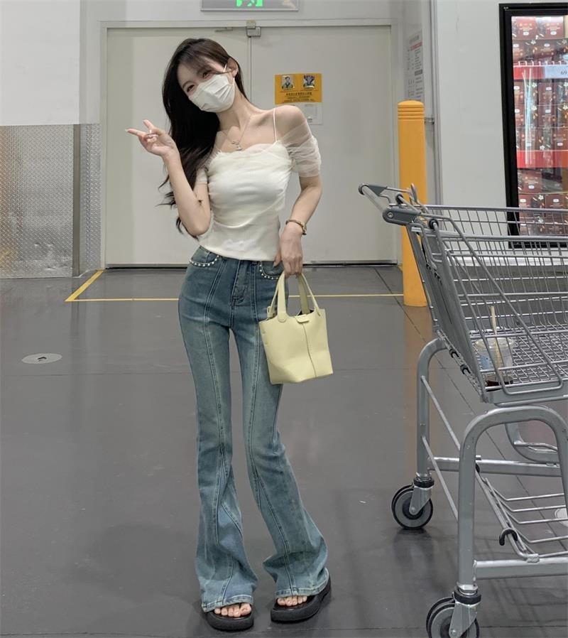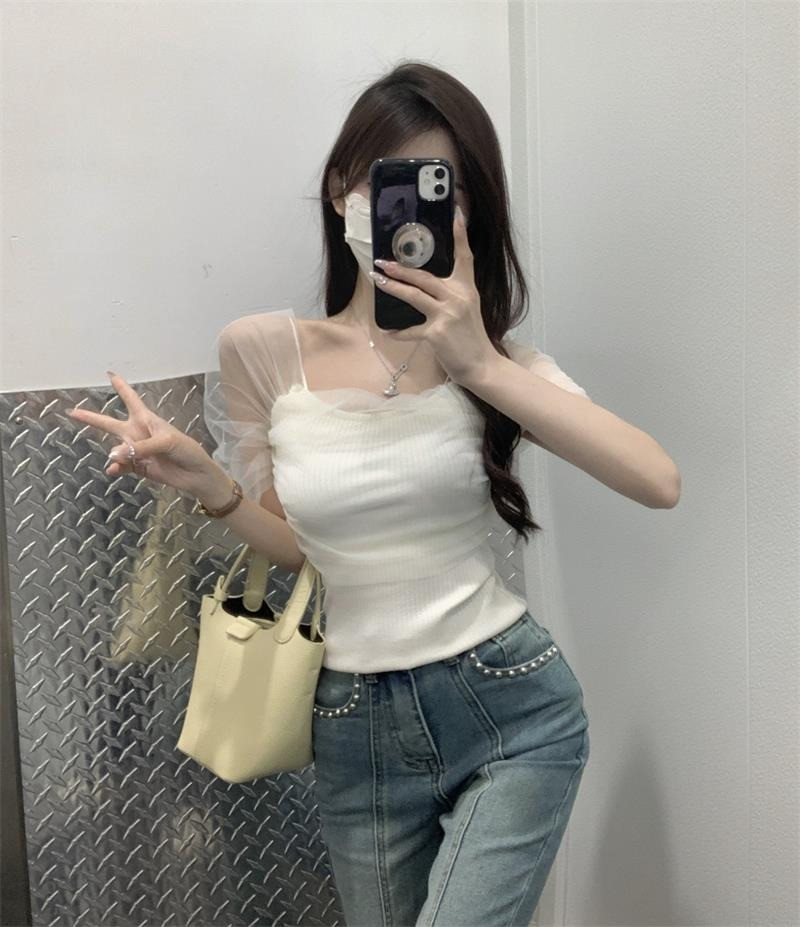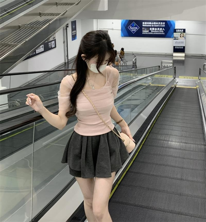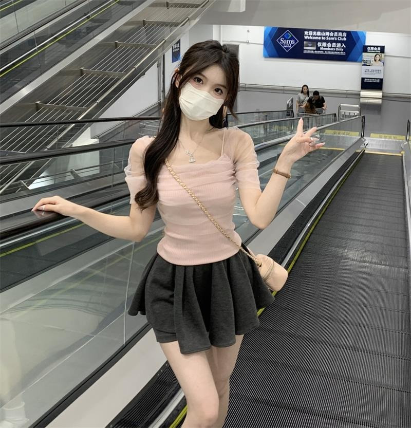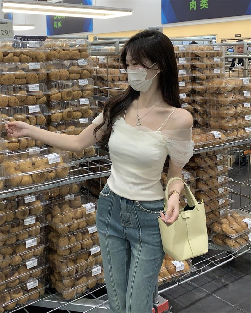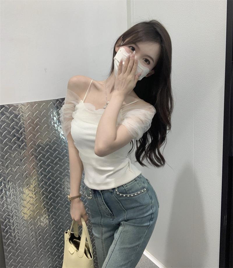 Розовая короткая милая футболка с коротким рукавом, открытые плечи, эффект подтяжки, высокая талия