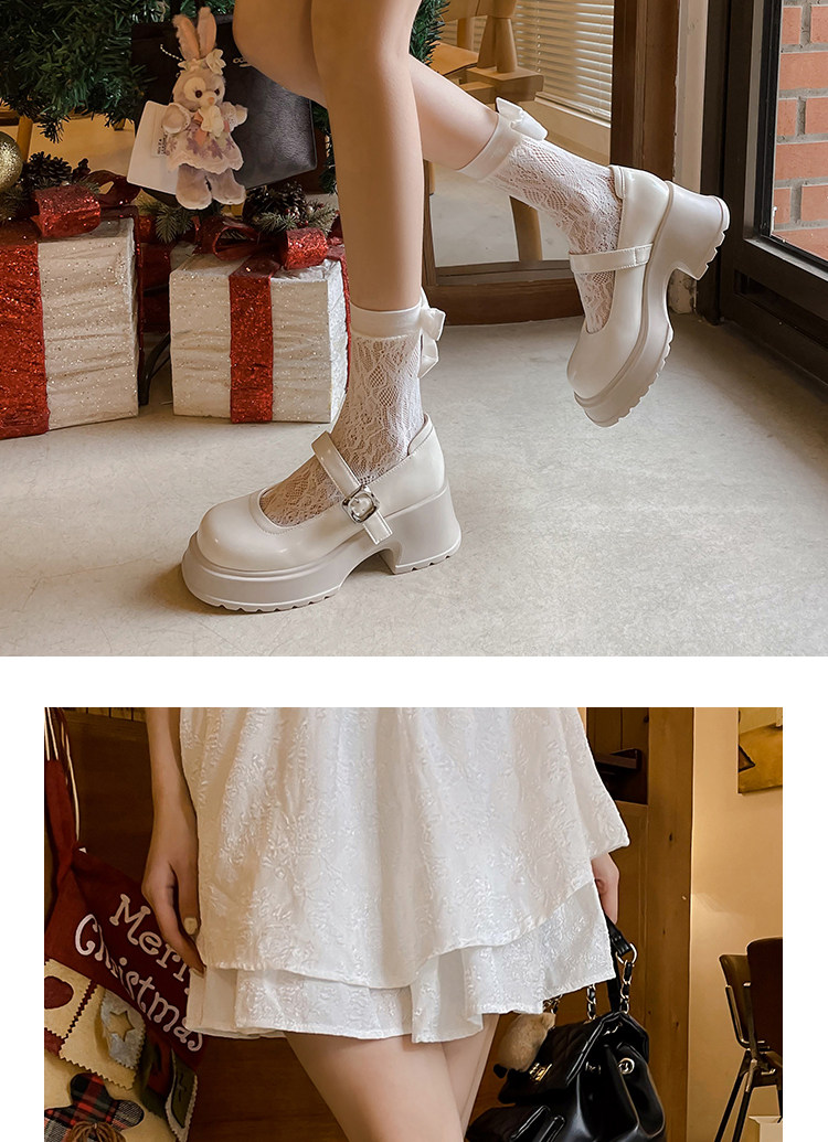 Liyuan Bear French Mary Mary Zhen Женская обувь 2024 Новая высокая высокая и толстая нижняя неглубокая рот увеличивает рыхлая пряжка для торта с отдельными туфлями