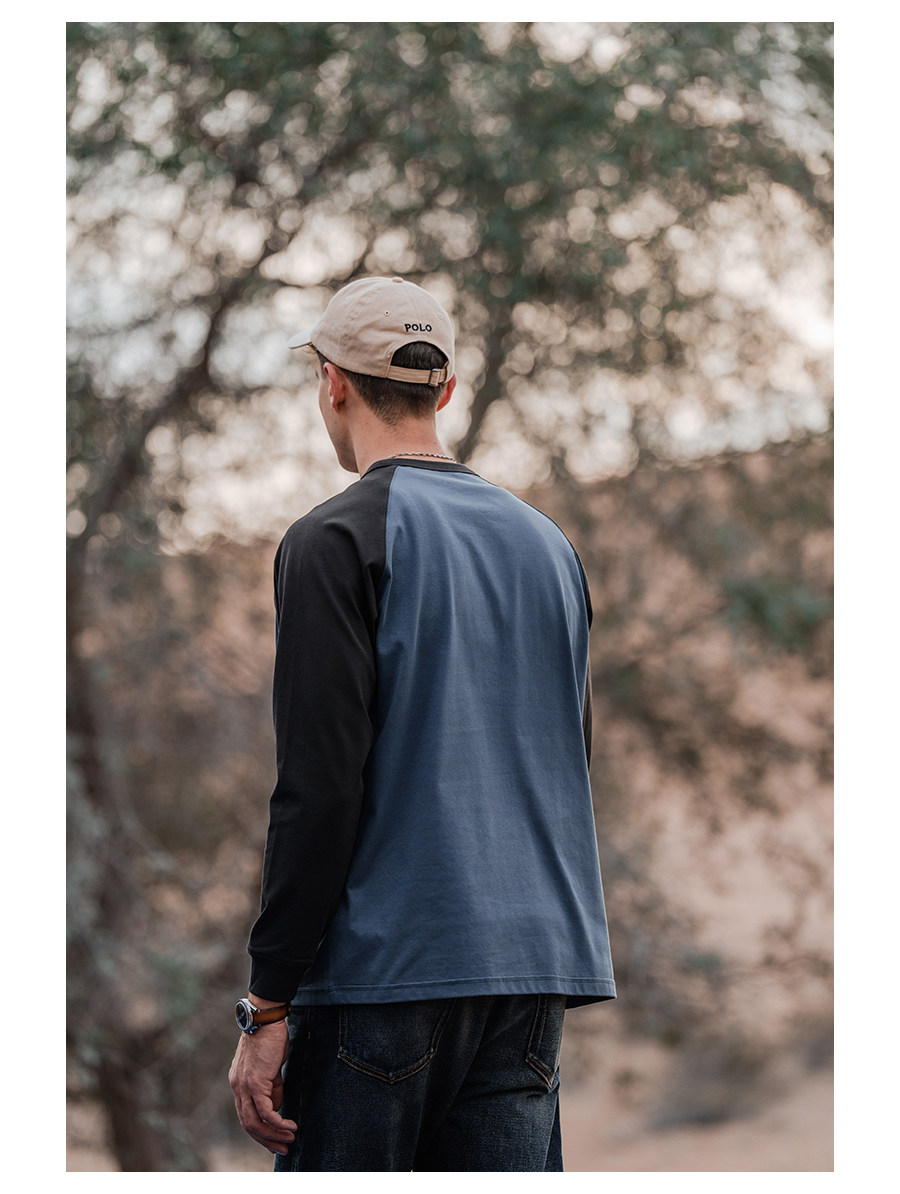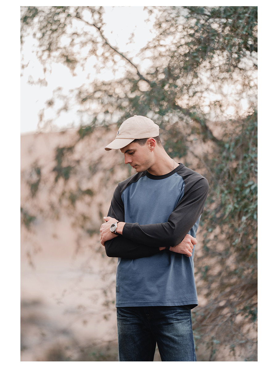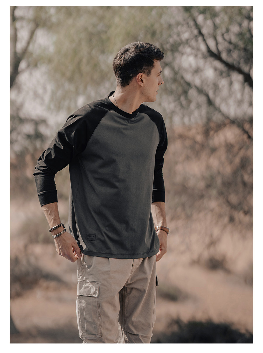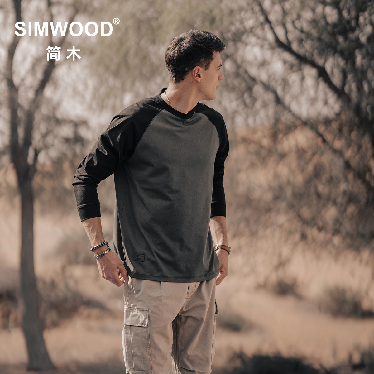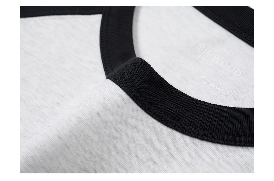 Simwood Простая деревянная мужская одежда [Свободная версия] 240G Sorona Контрастная круглая шея втипная футболка с длинным рукавом для мужчин