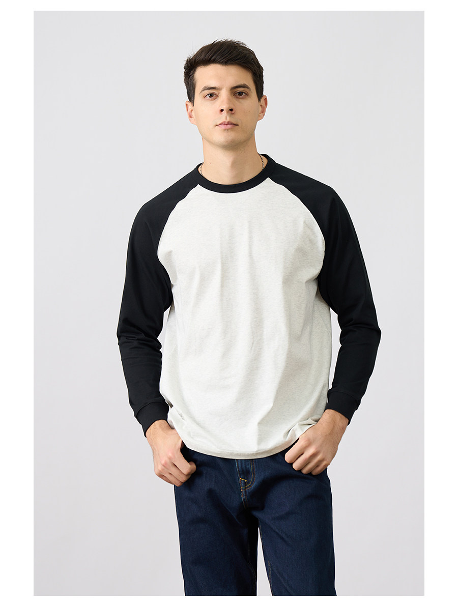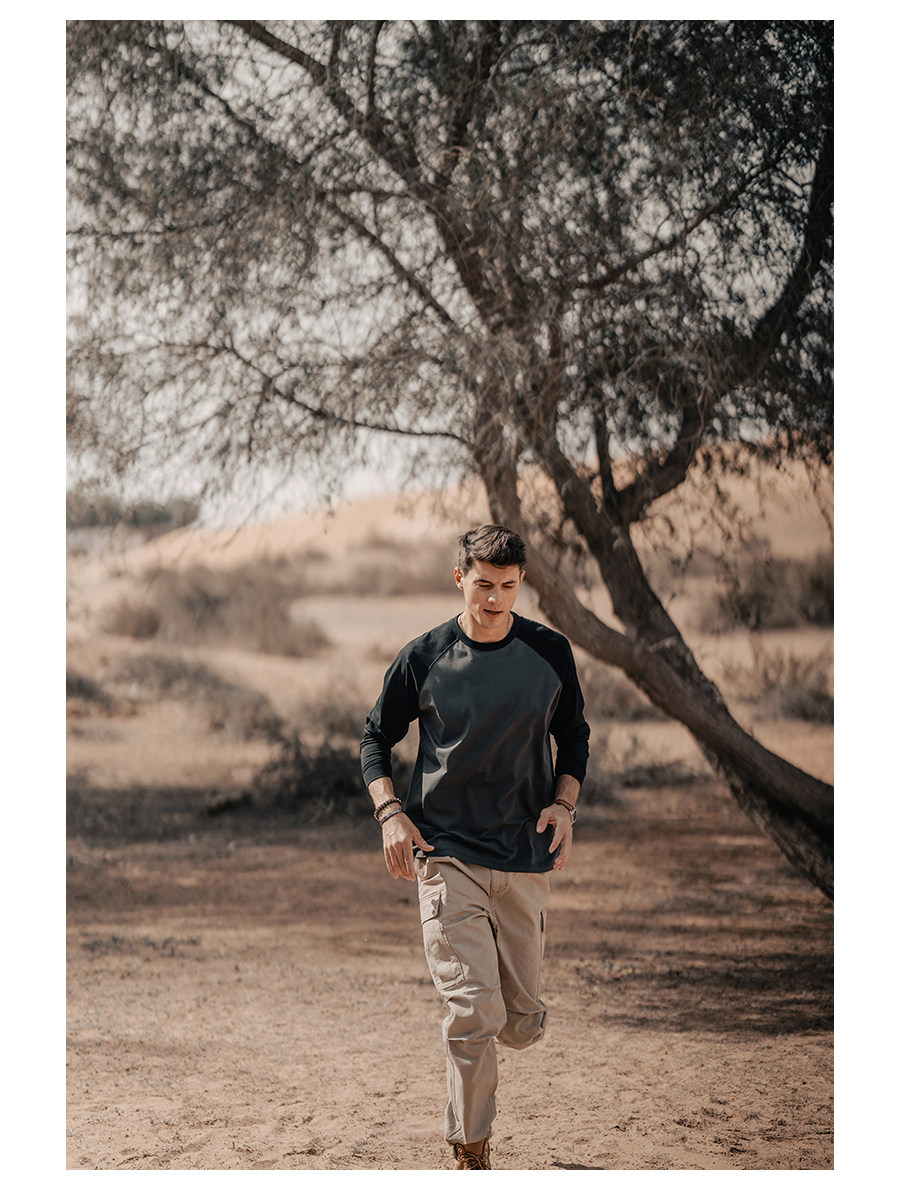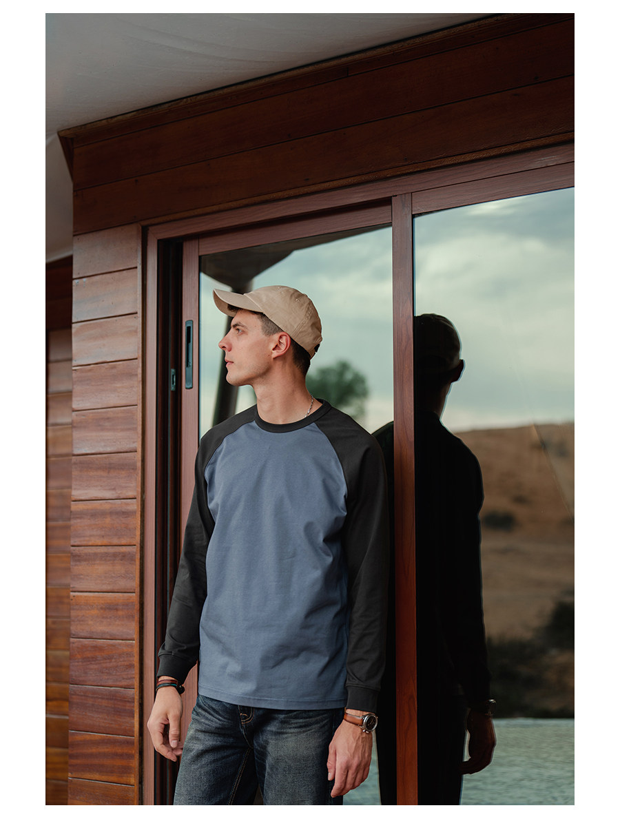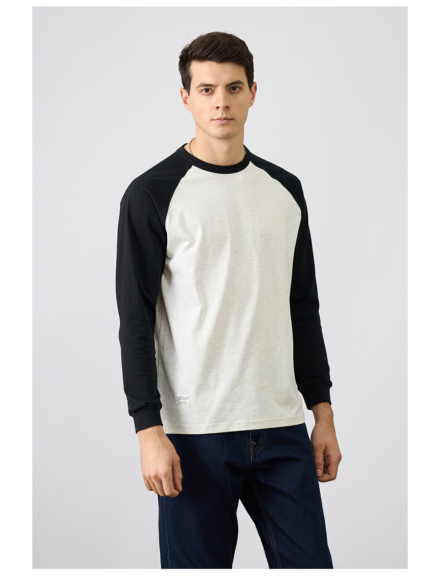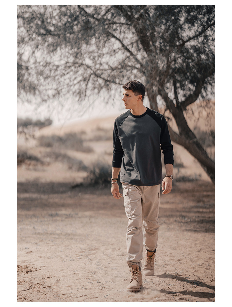 Simwood Простая деревянная мужская одежда [Свободная версия] 240G Sorona Контрастная круглая шея втипная футболка с длинным рукавом для мужчин