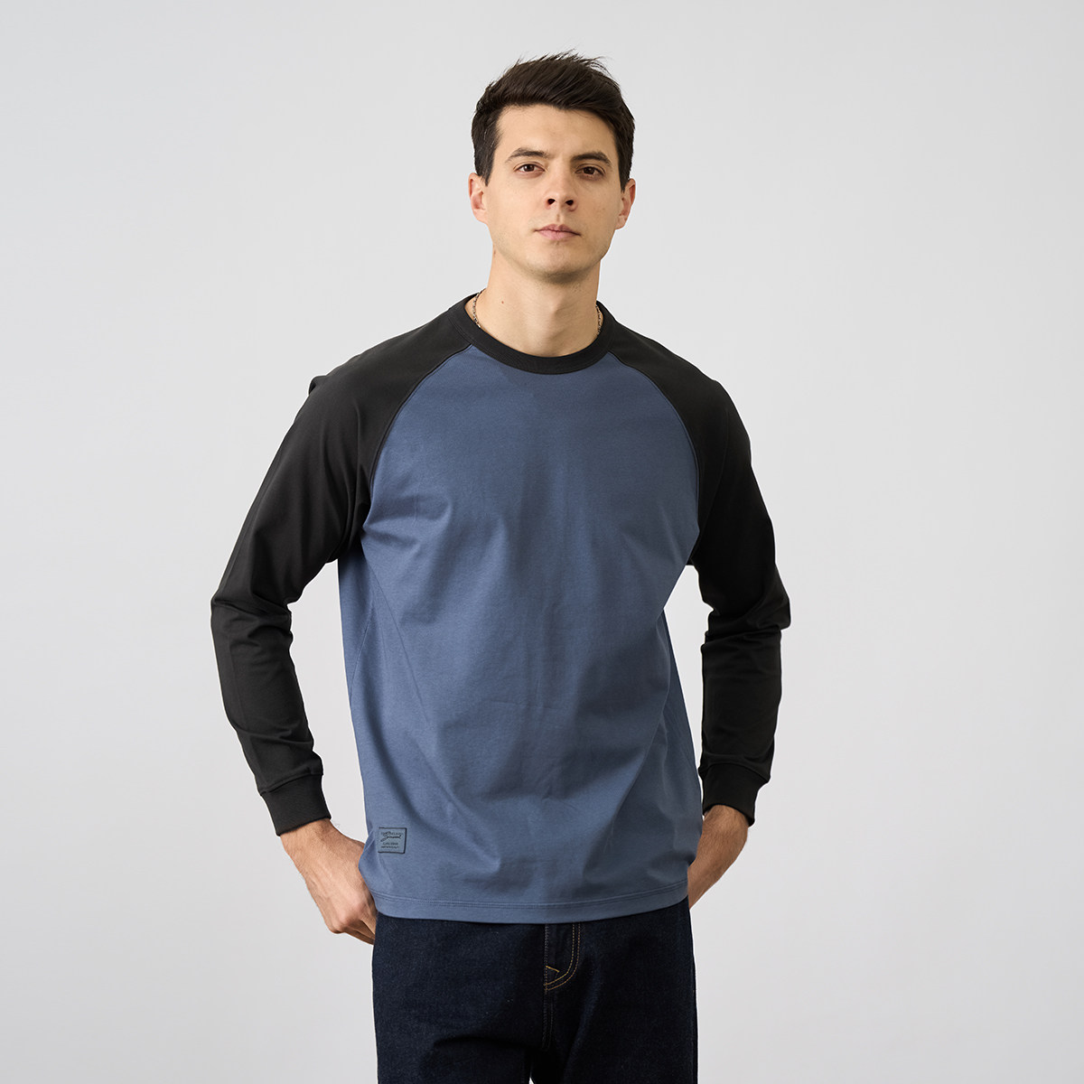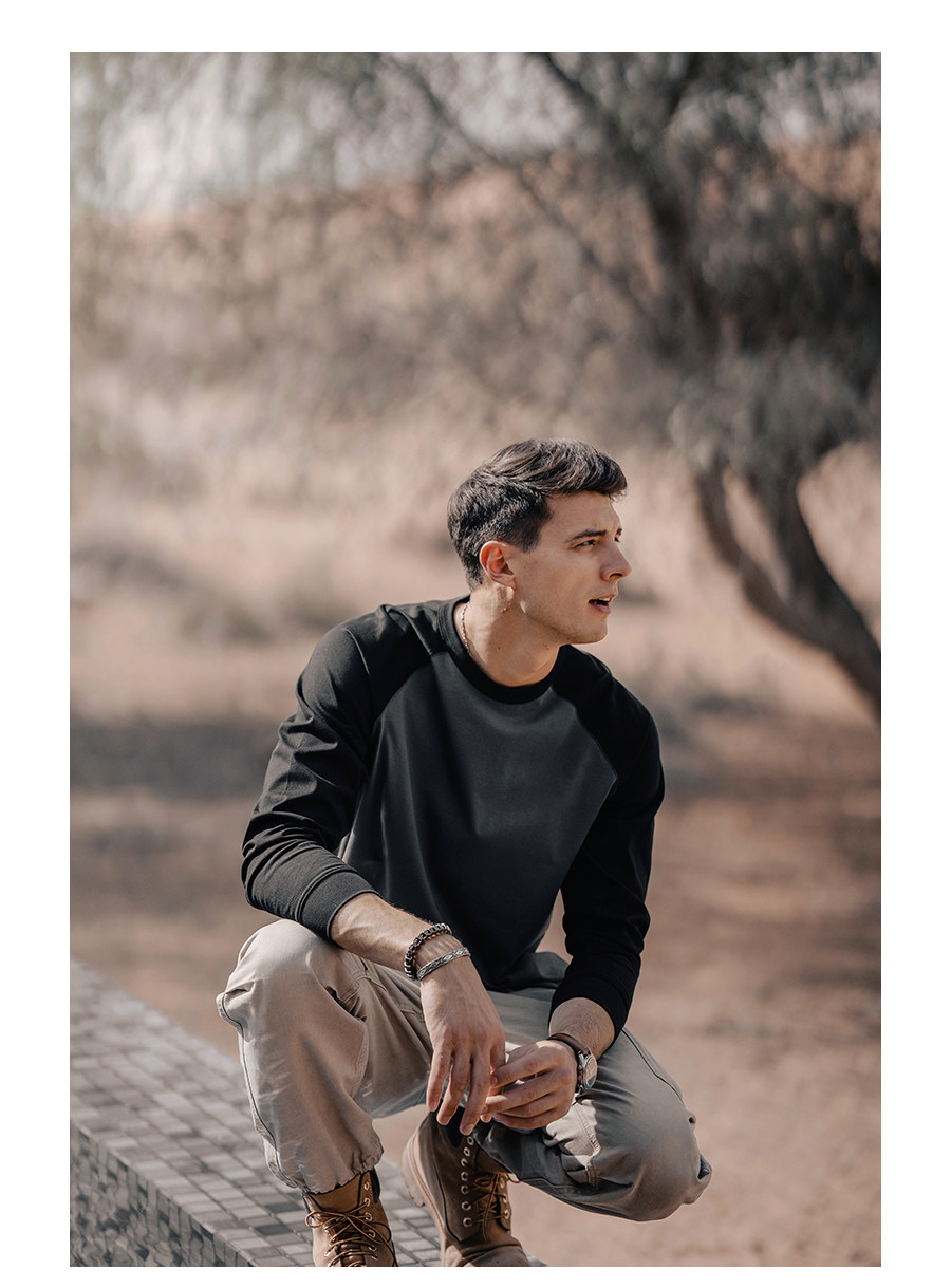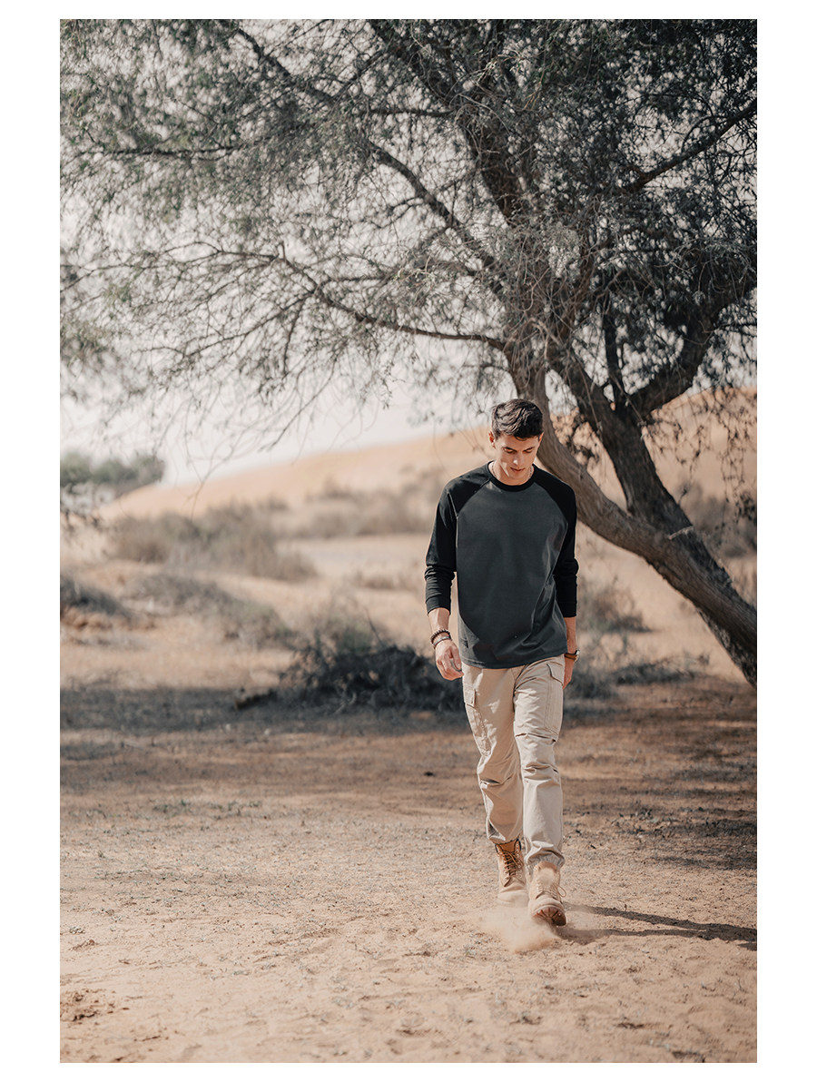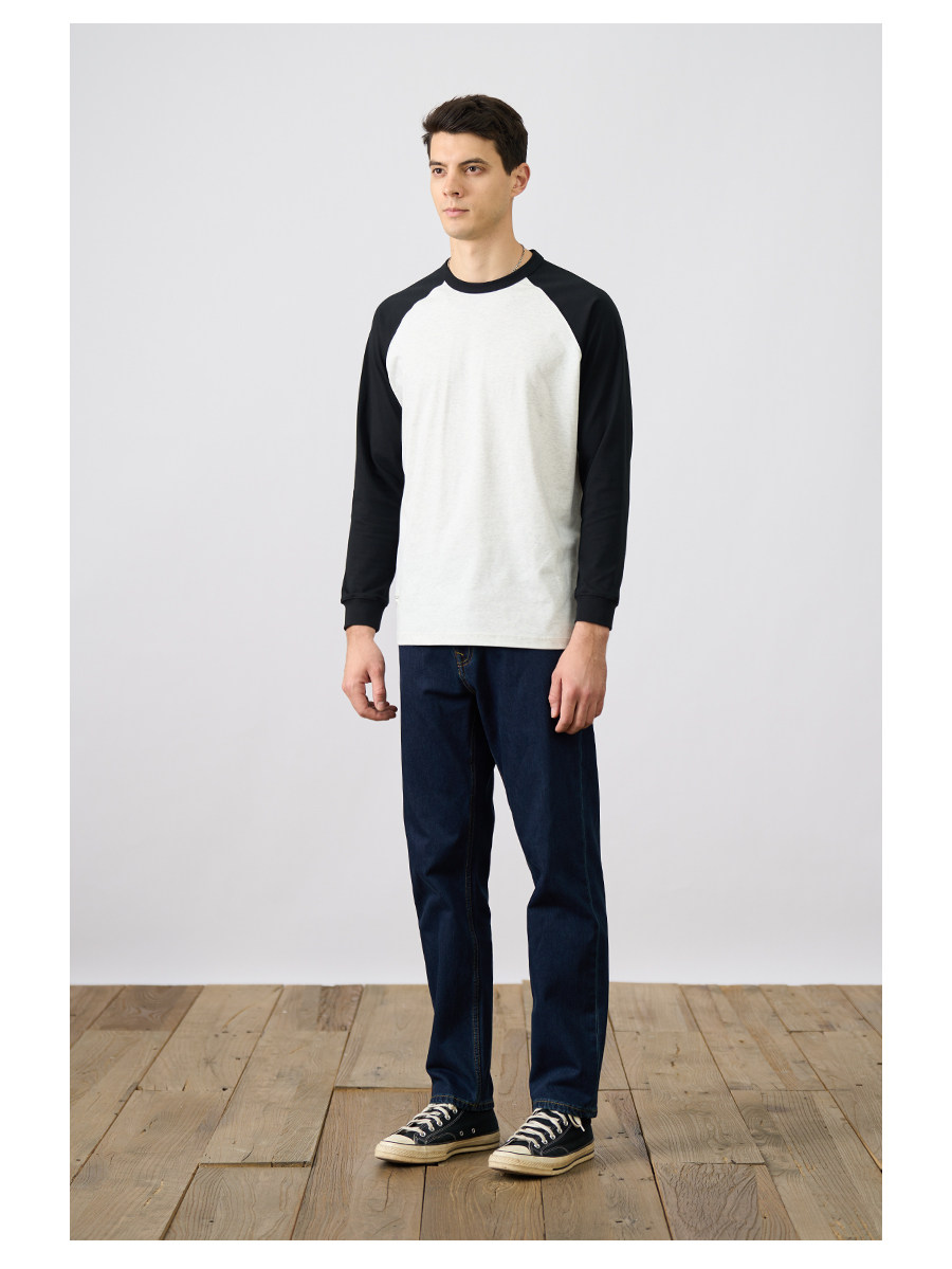 Simwood Простая деревянная мужская одежда [Свободная версия] 240G Sorona Контрастная круглая шея втипная футболка с длинным рукавом для мужчин
