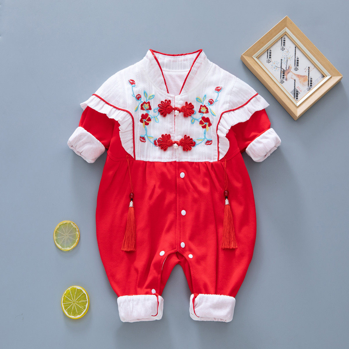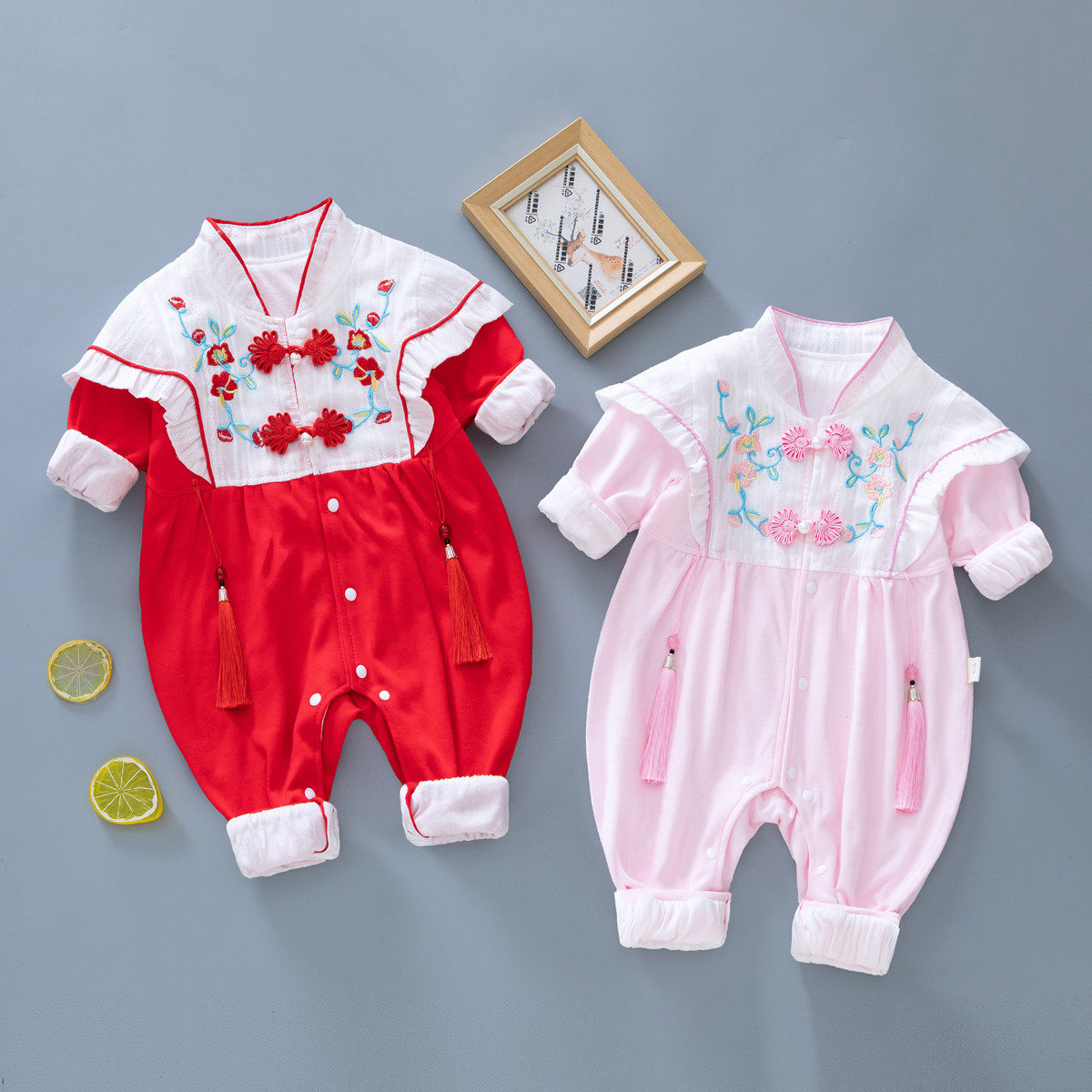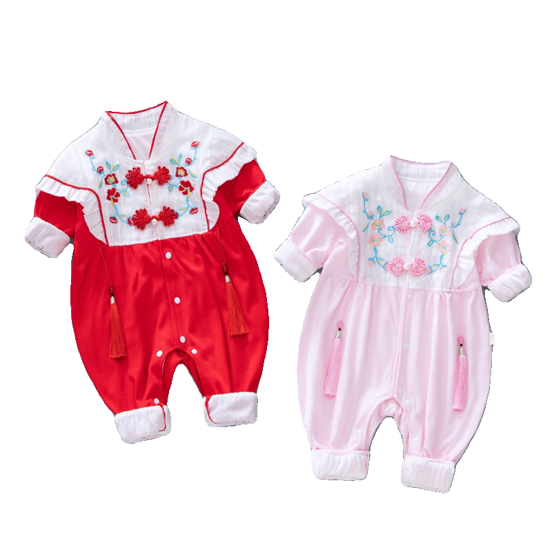 Детский комбинезон для девочек, двухэтажное демисезонное платье для новорожденных, наряд на выход, китайский стиль