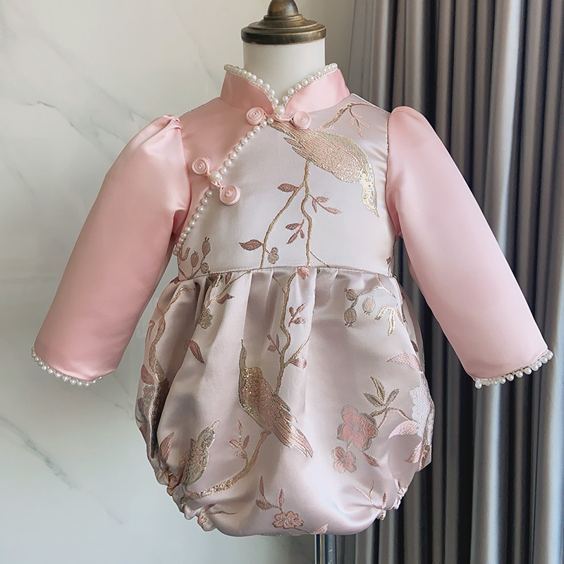 Платье для девочек, розовое ципао, детский демисезонный лонгслив, китайский стиль, наряд на выход, подарок на день рождения