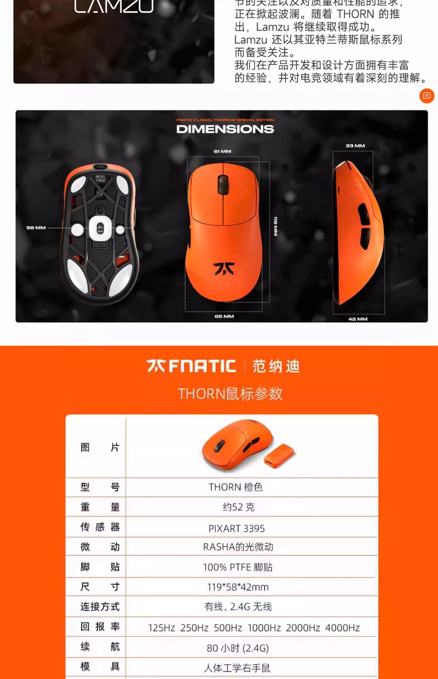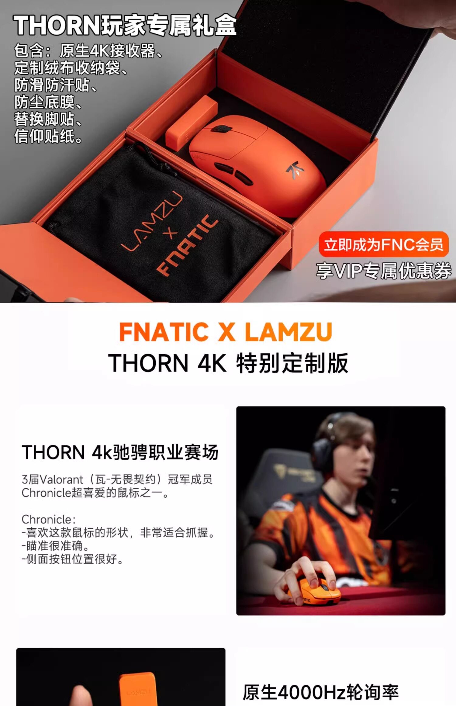 Fnatic Vanni Thorns Gaming Game Game Mouse 4K Беспроводная легкая профессиональная машина Lamzu Tile CSGO
