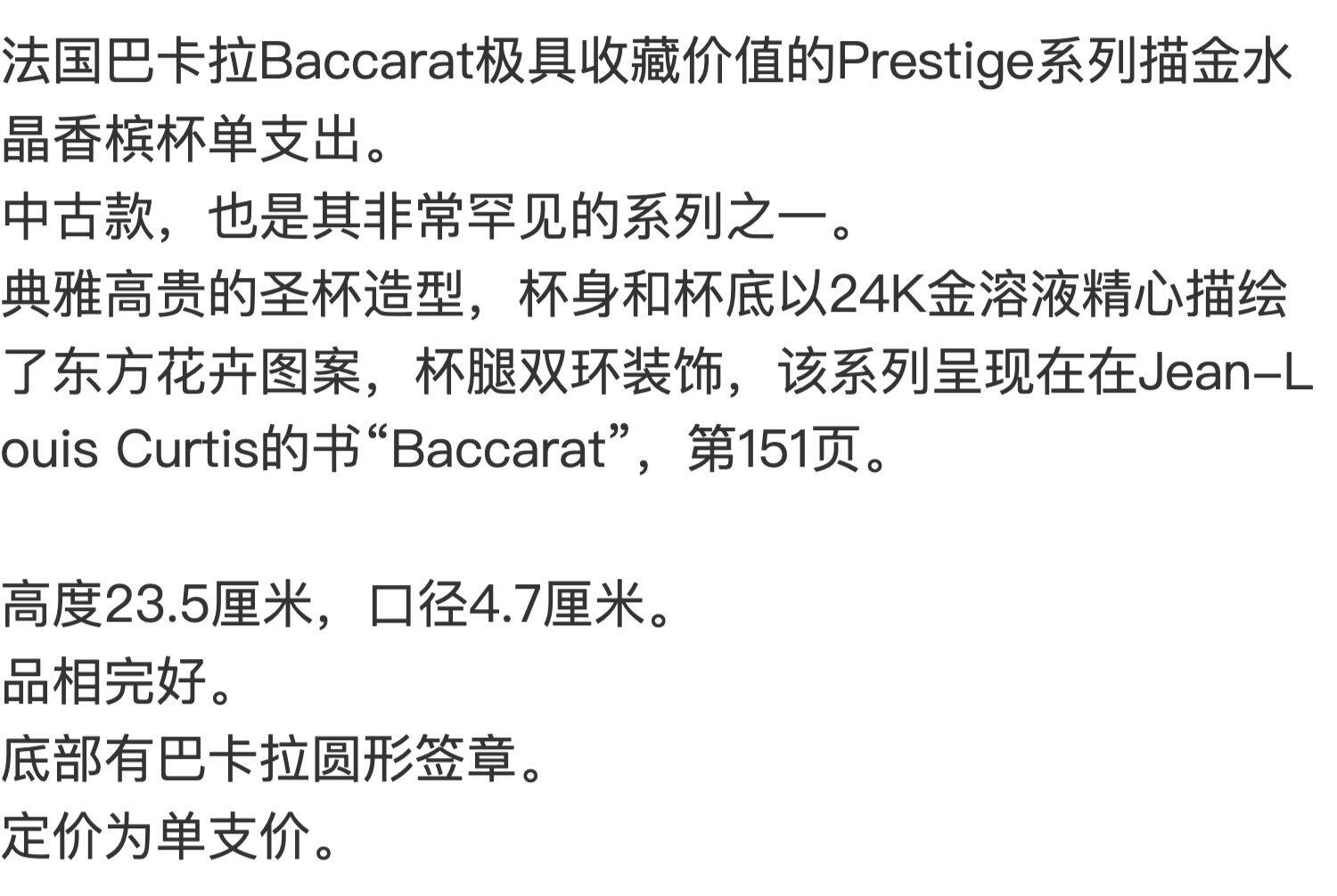 Бесплатная доставка Франция Баккара/Бакара Средняя Коллекция Престиж Серия позолоченного хрустального шампанского Кубка