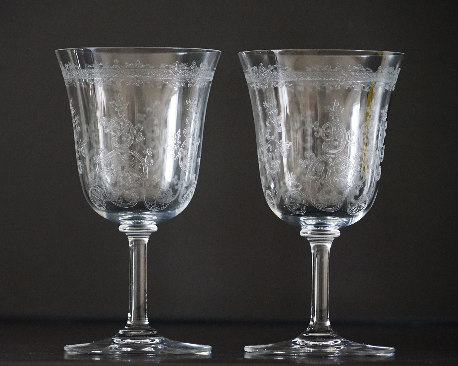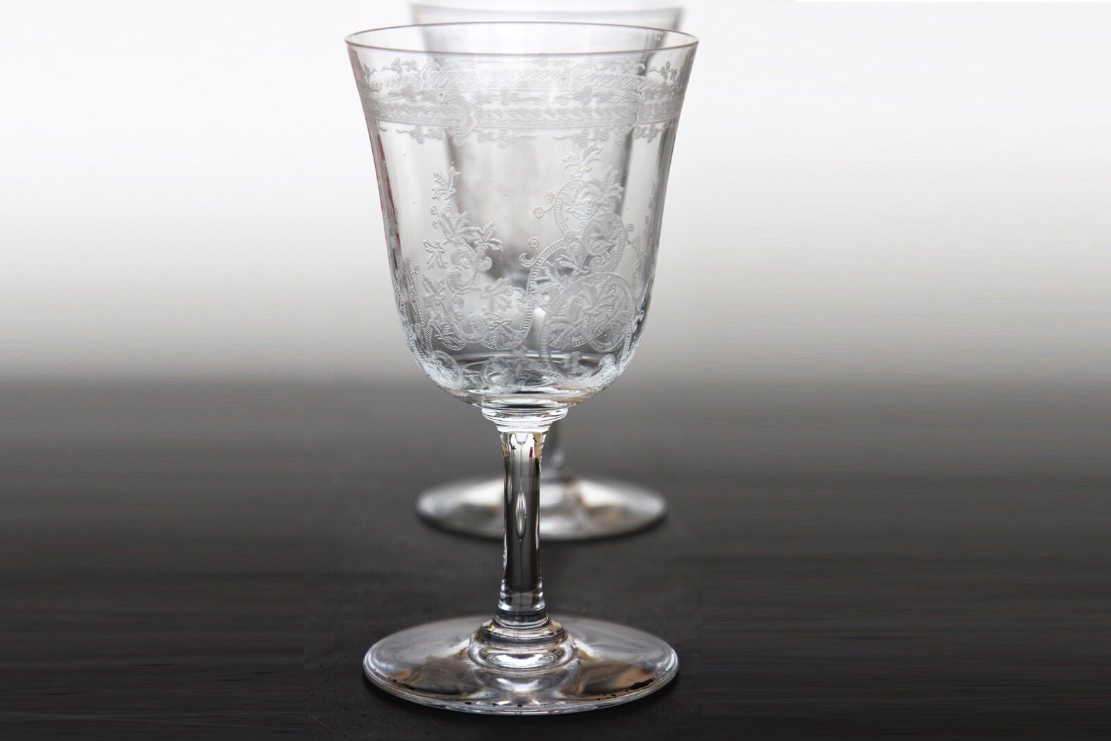 Пара подержанных рюмок для ликера French Baccarat/Baccarat редкой серии Lafayette с резным хрусталем.