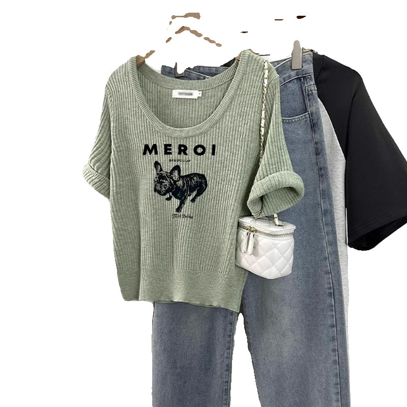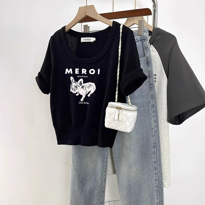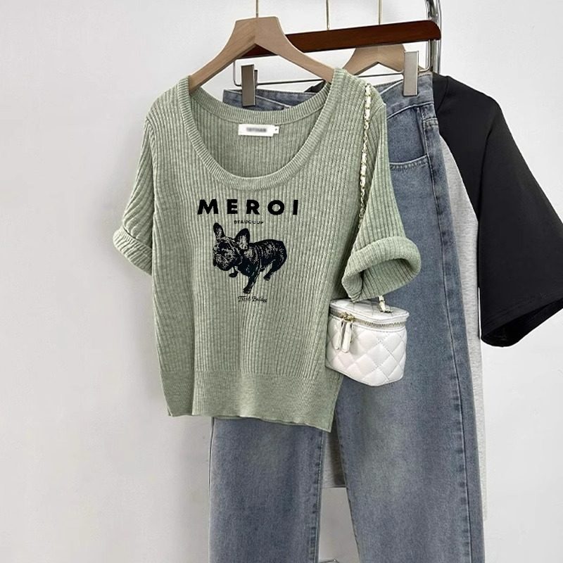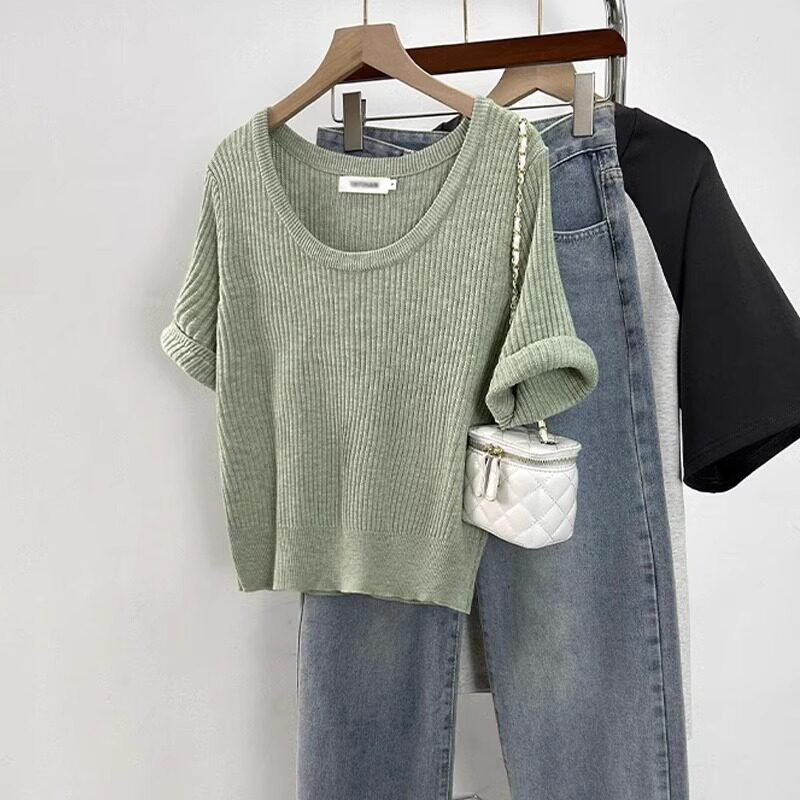 Трикотажная весенняя летняя короткая футболка с коротким рукавом