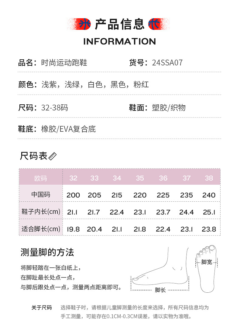 | Размер обуви: | 32 (длина футов 19,8/внутри 21,1), 33 (20,4/внутри 21,7), 34 (21,1/внутри 22,4), 35 (21,8/внутри 23.1), 36 (22,4/внутри 23,7), 37 (23,1/внутри 24.4), 38 (23,8/внутри 25.1) |